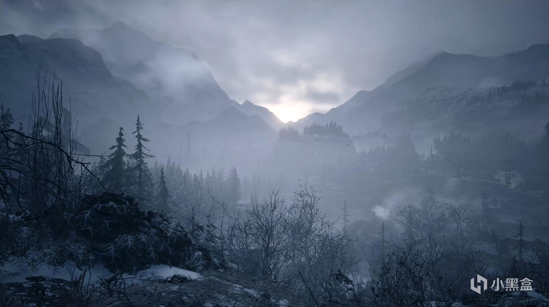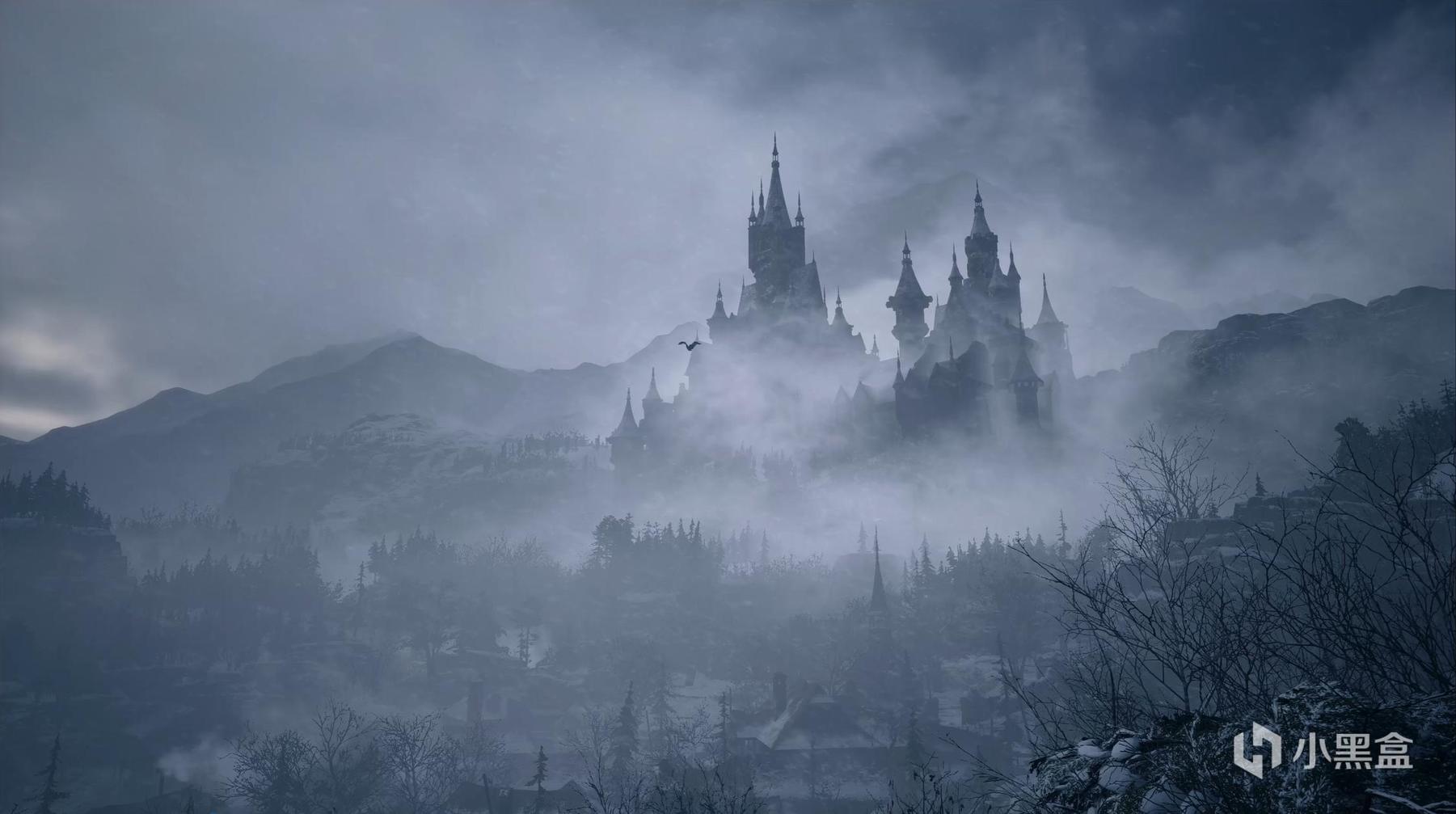 《生化危机:村庄》与前作一样,采用了第一人称视角进行游戏,因此在游戏一开场人物并未在我眼前展开,更多的便是游戏中的主要场景:村庄与其依附的巍峨群山,和山峦中若隐若现的古堡。