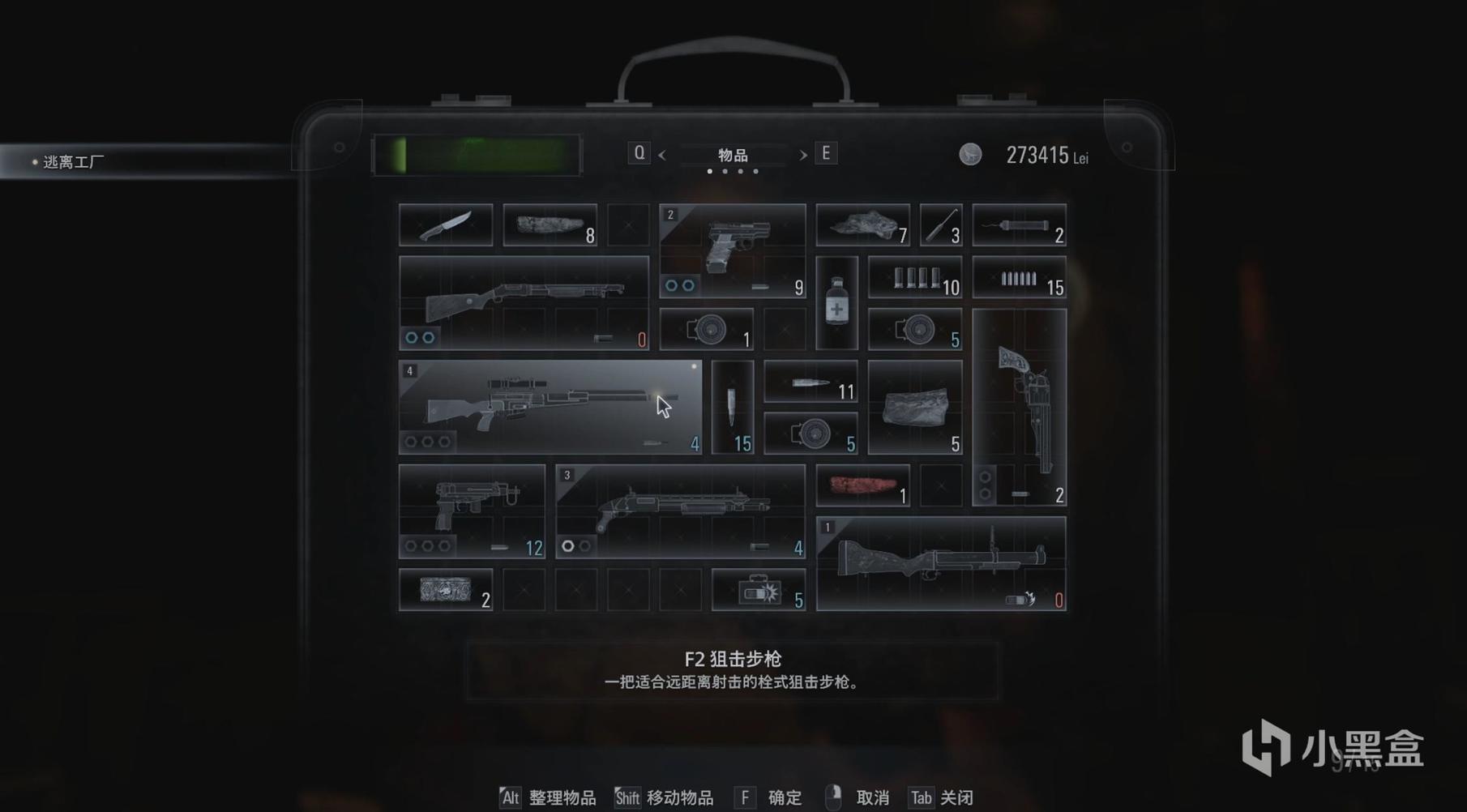 除了战斗物资外,伊森武器的升级、自身属性提升以及背包扩展都是由公爵提供,玩家可通过消耗从敌人尸体上取得的“Lei”和狩猎家畜、家禽取得的素材来进行上述物品与属性的提升。其中值得一提的是伊森的背包一开始的空间极为有限,而玩家在游戏中获得的枪械与道具都会占据不同的空间,因此需要玩家在如何摆放上花一些心思以获得最大限度的摆放空间。而升级背包空间后伊森的携带能力会逐渐增加,让玩家后续的探索极限范围进一步扩大。