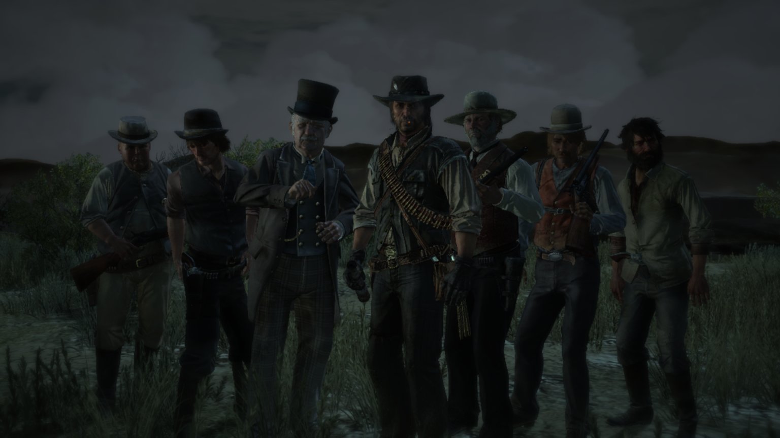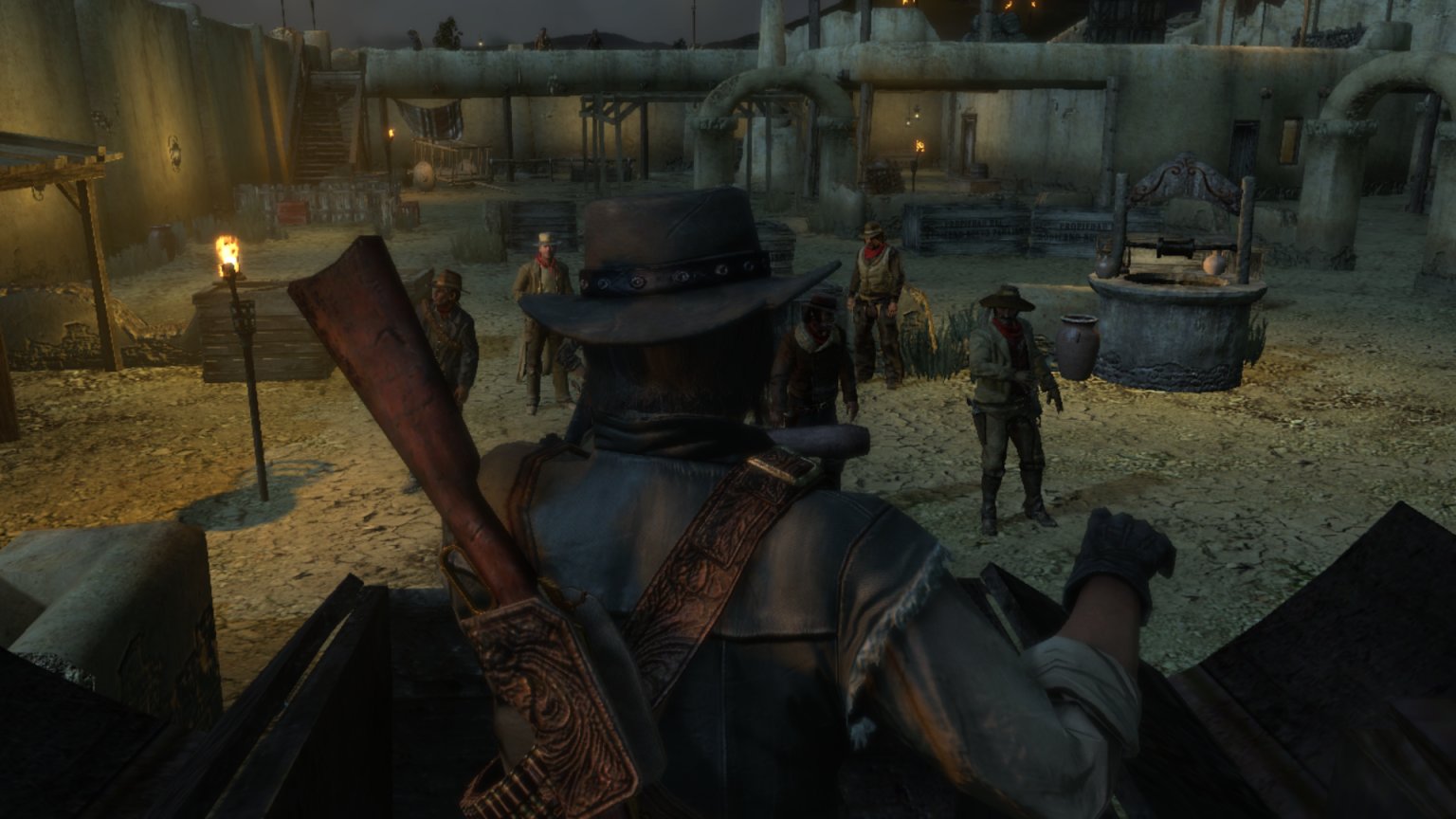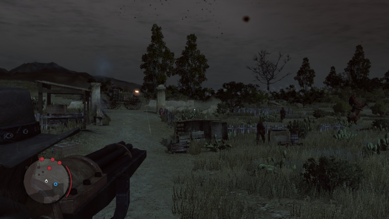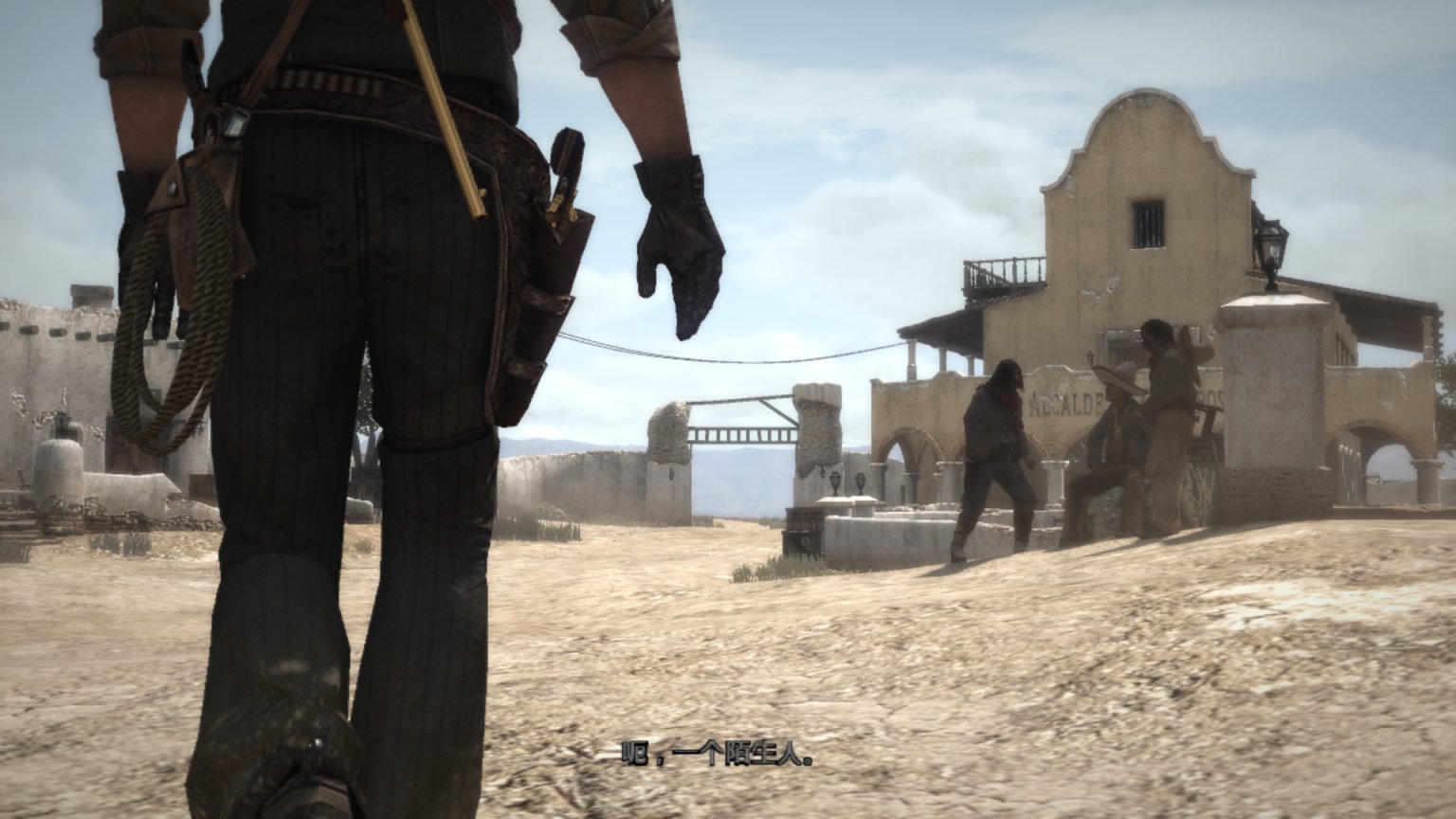 约翰马斯顿爬上机枪,看着外面的追兵。