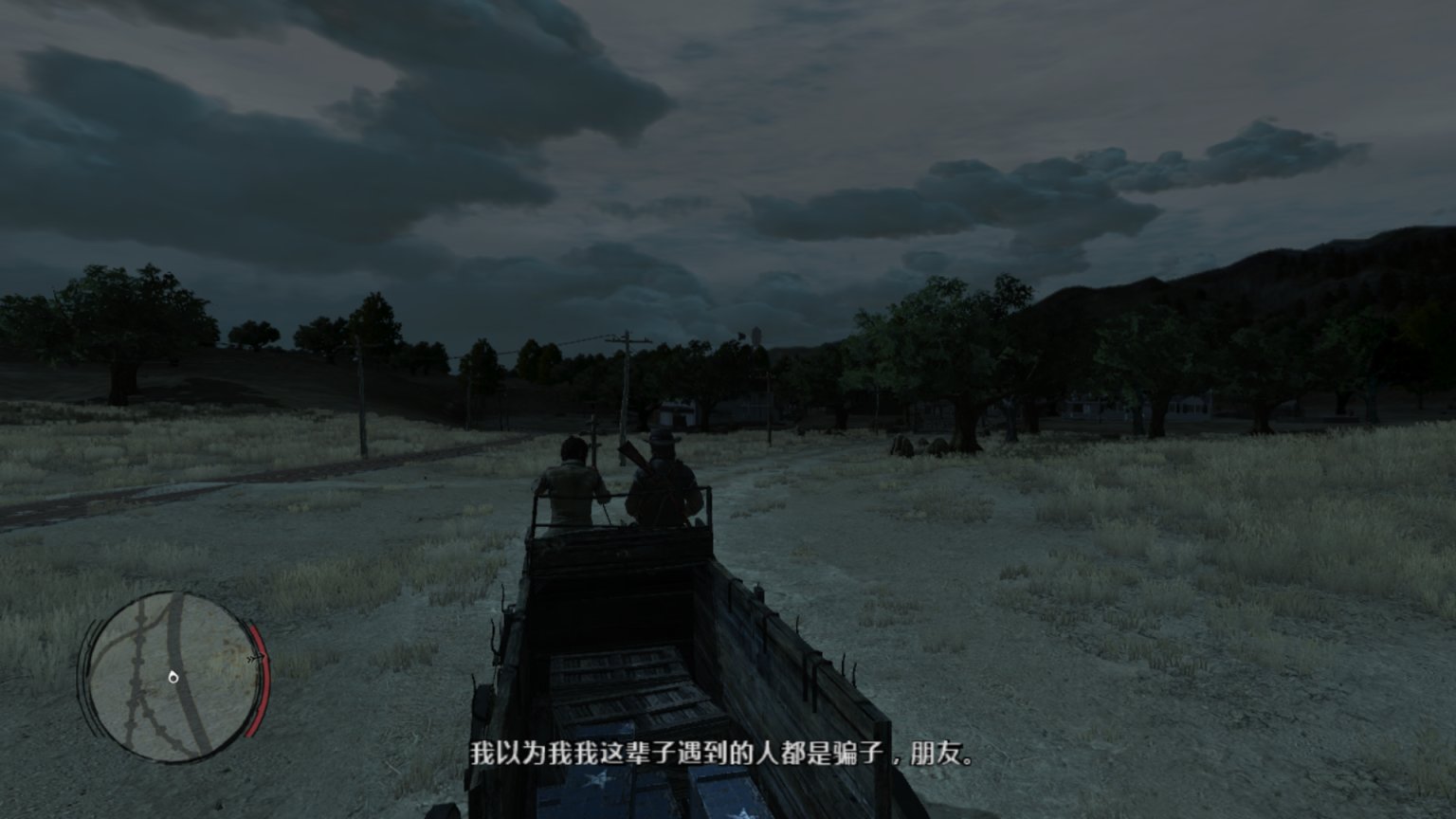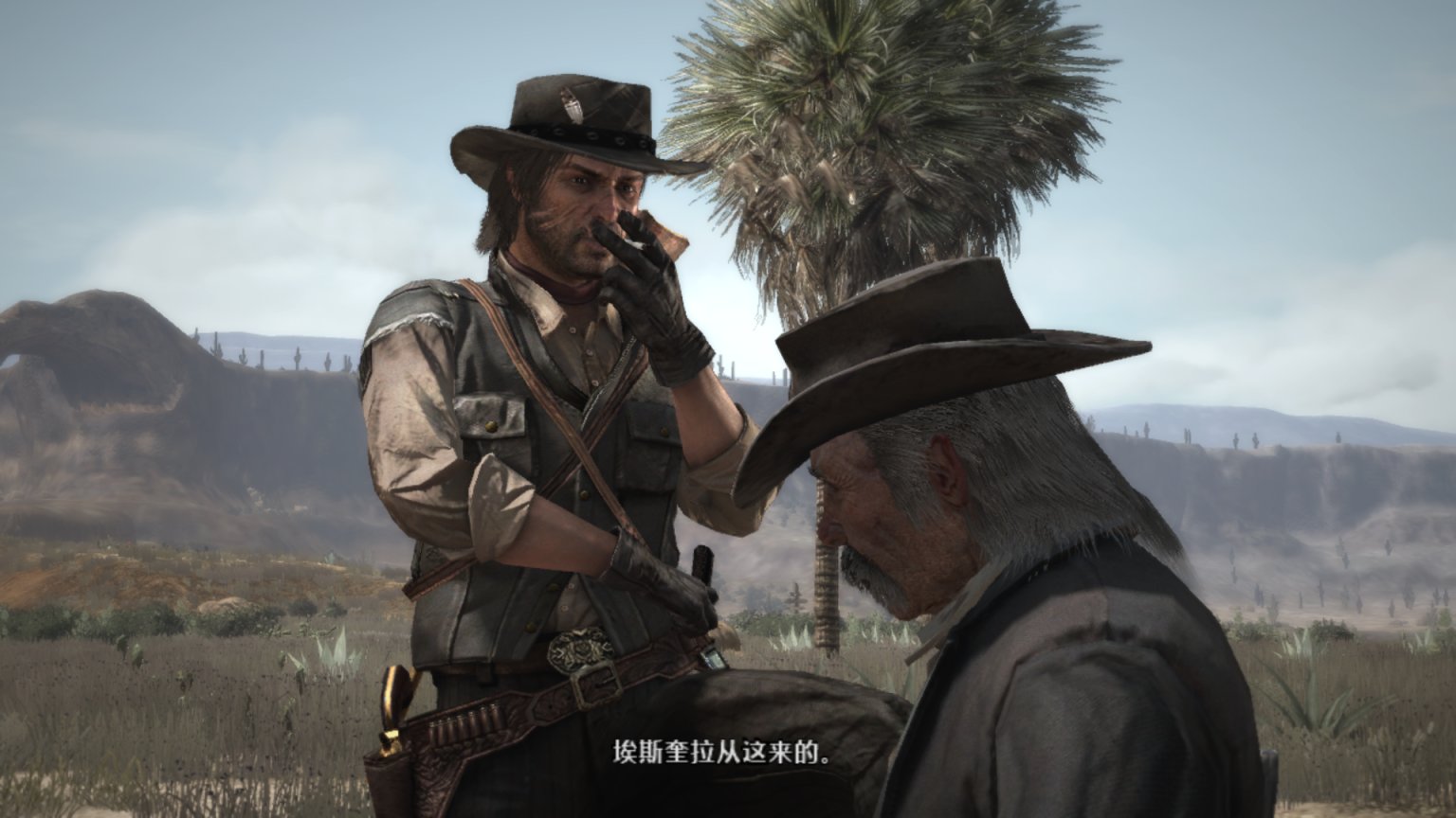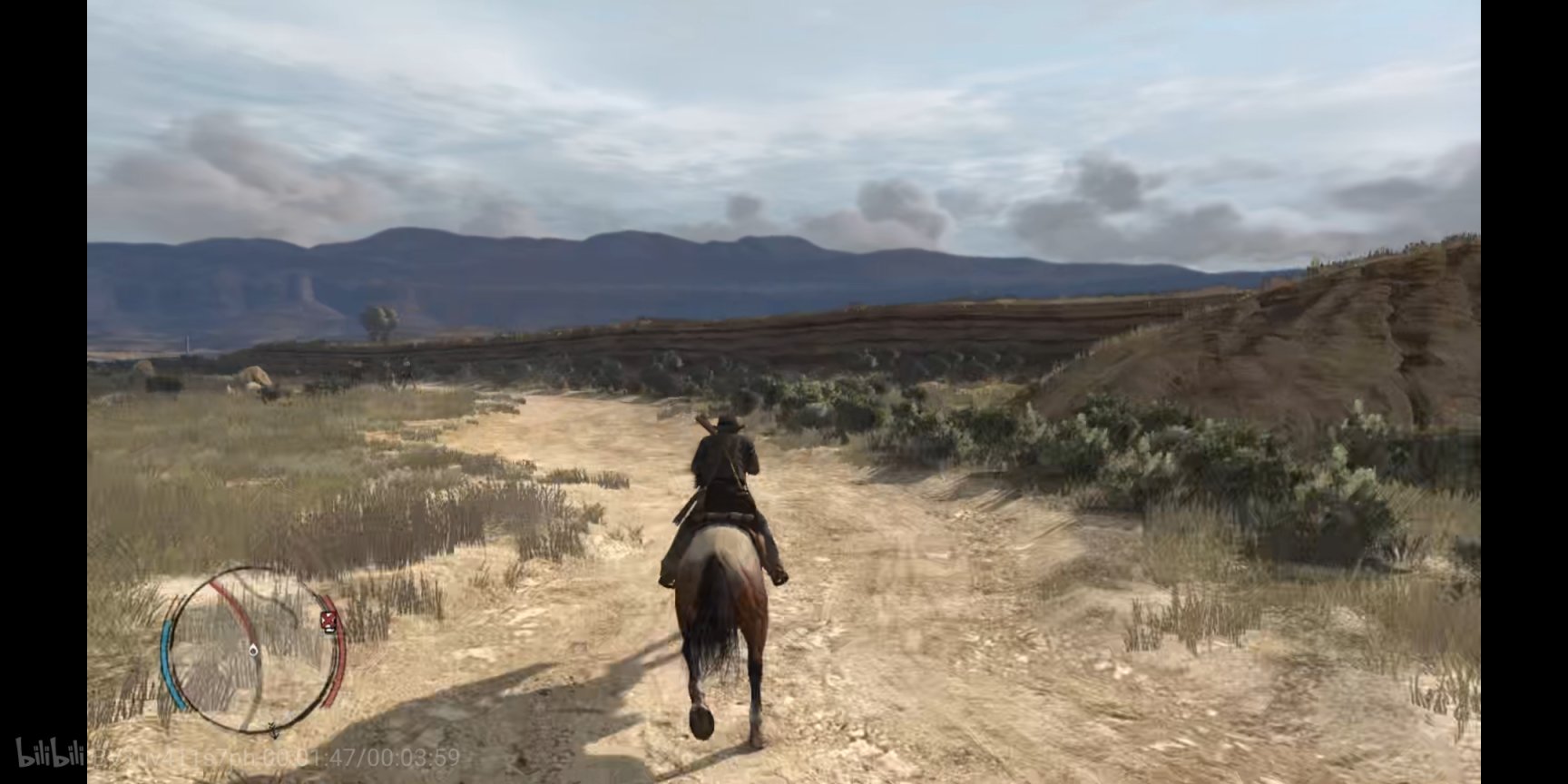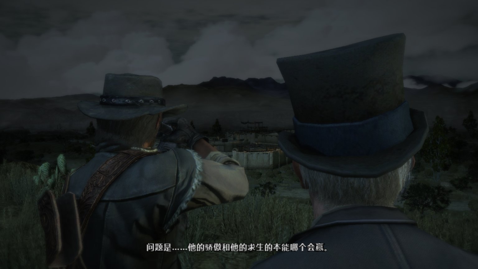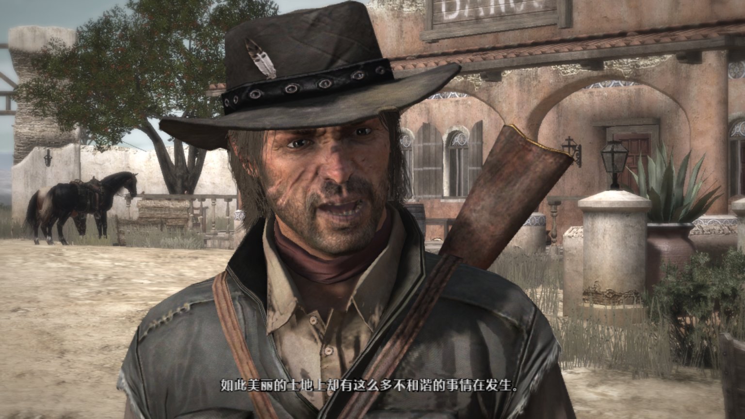 背景音乐响起了《Far away》,这里可以说是大镖客一代里面最经典的一段,约翰这个硬汉在此刻的旅行抓住了任何一个玩家的心。