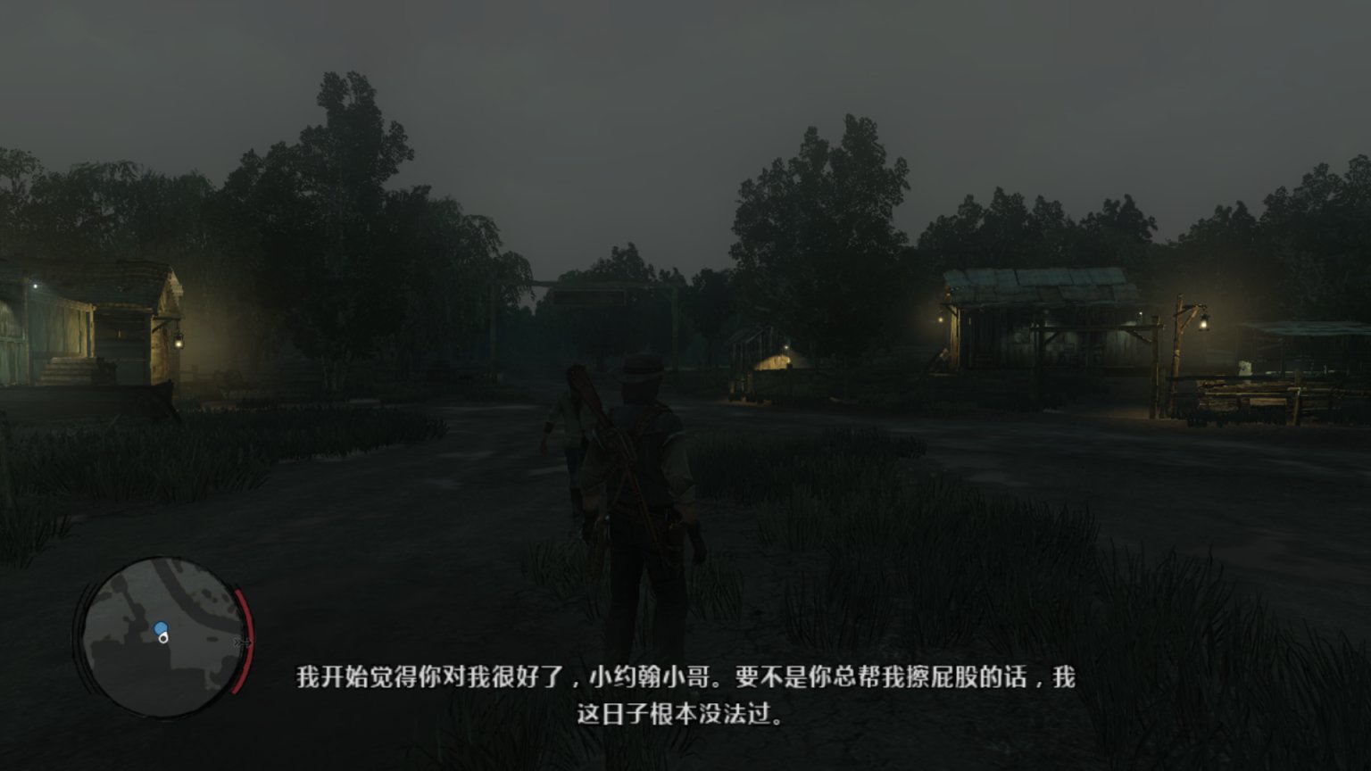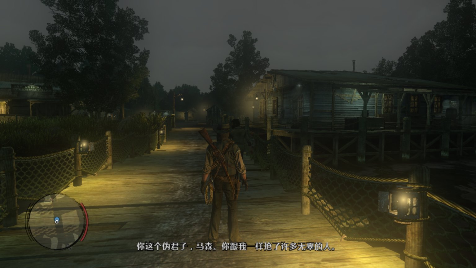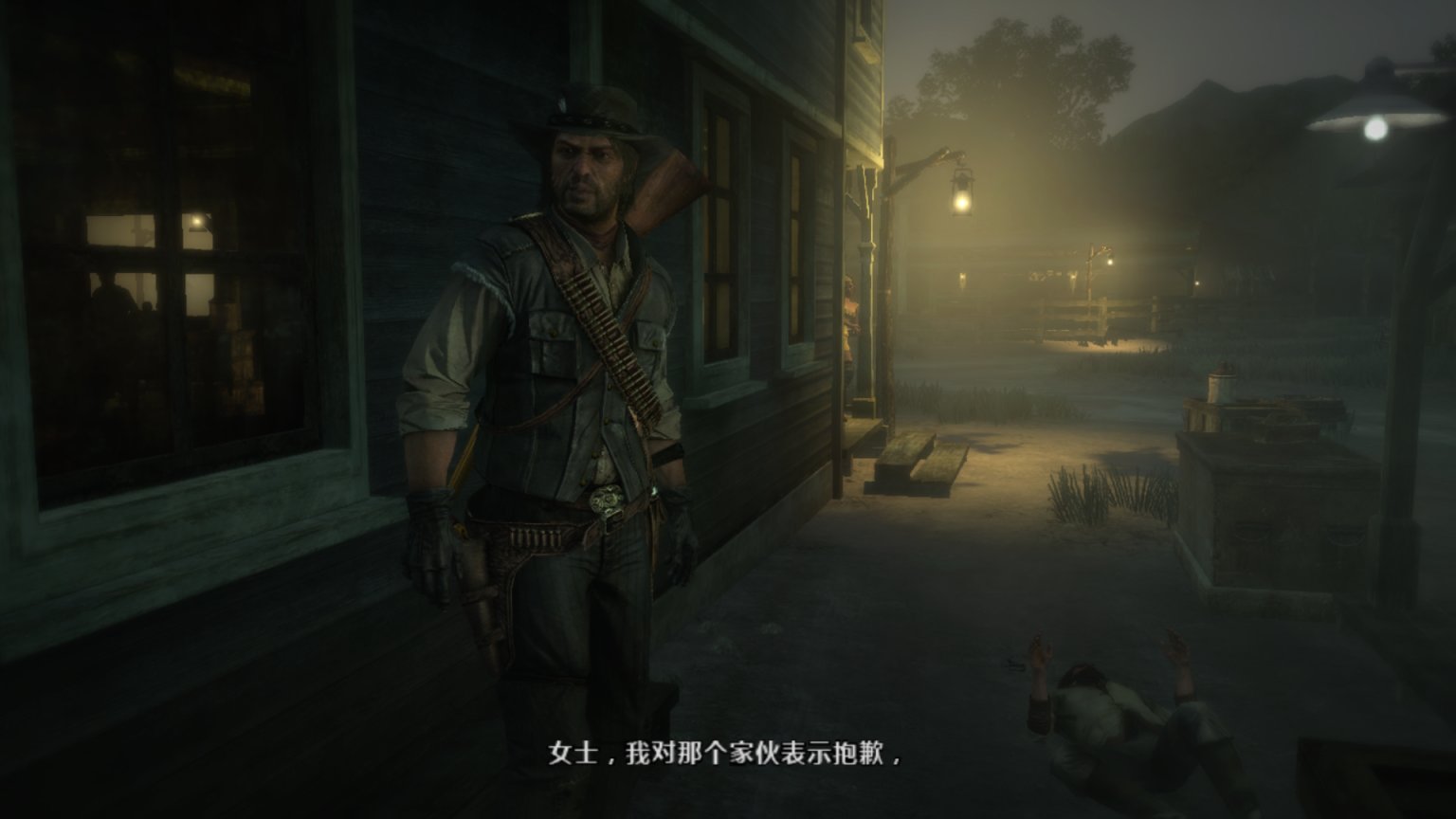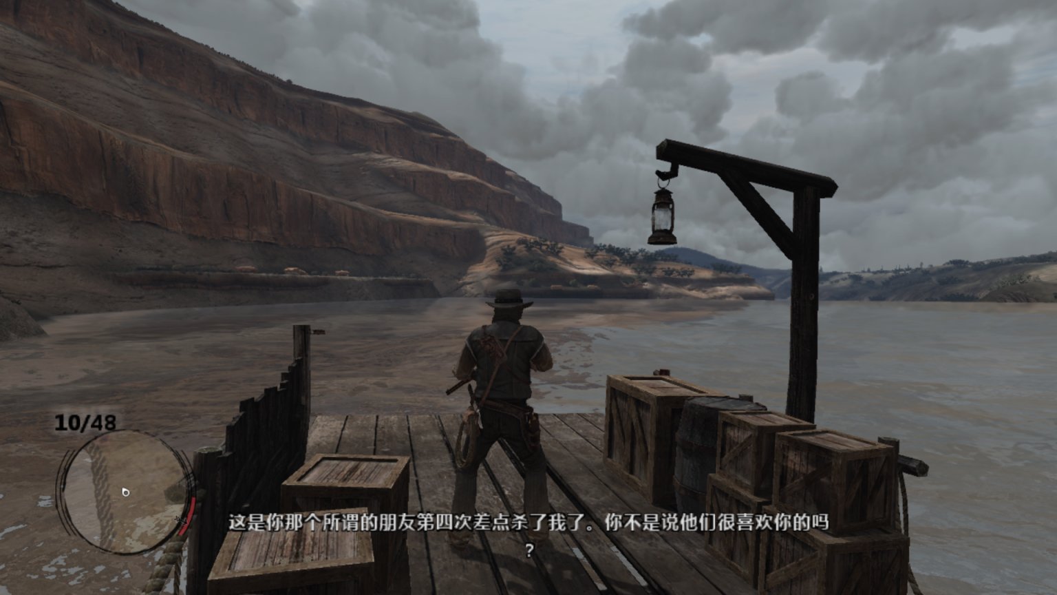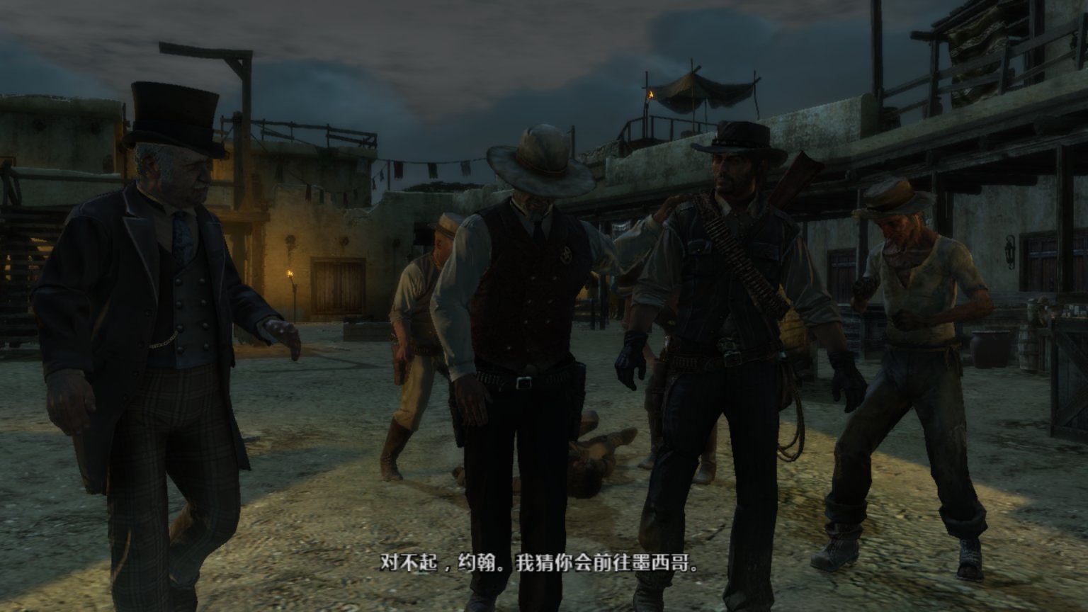 背景音乐响起了《Far away》,这里可以说是大镖客一代里面最经典的一段,约翰这个硬汉在此刻的旅行抓住了任何一个玩家的心。