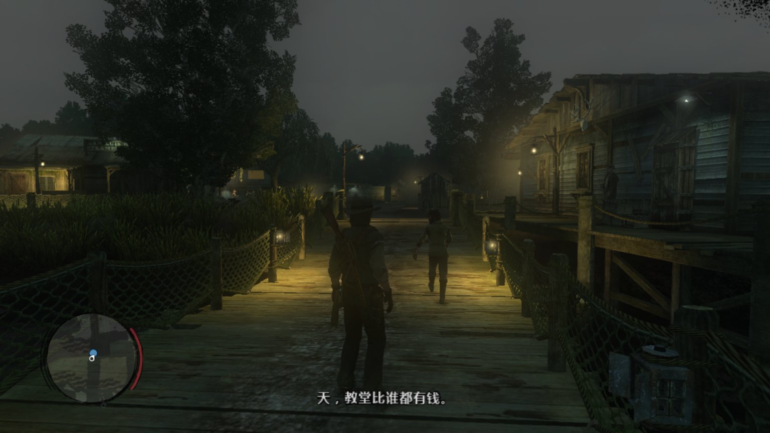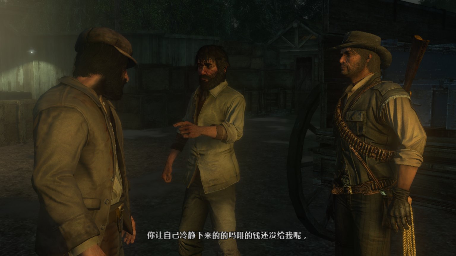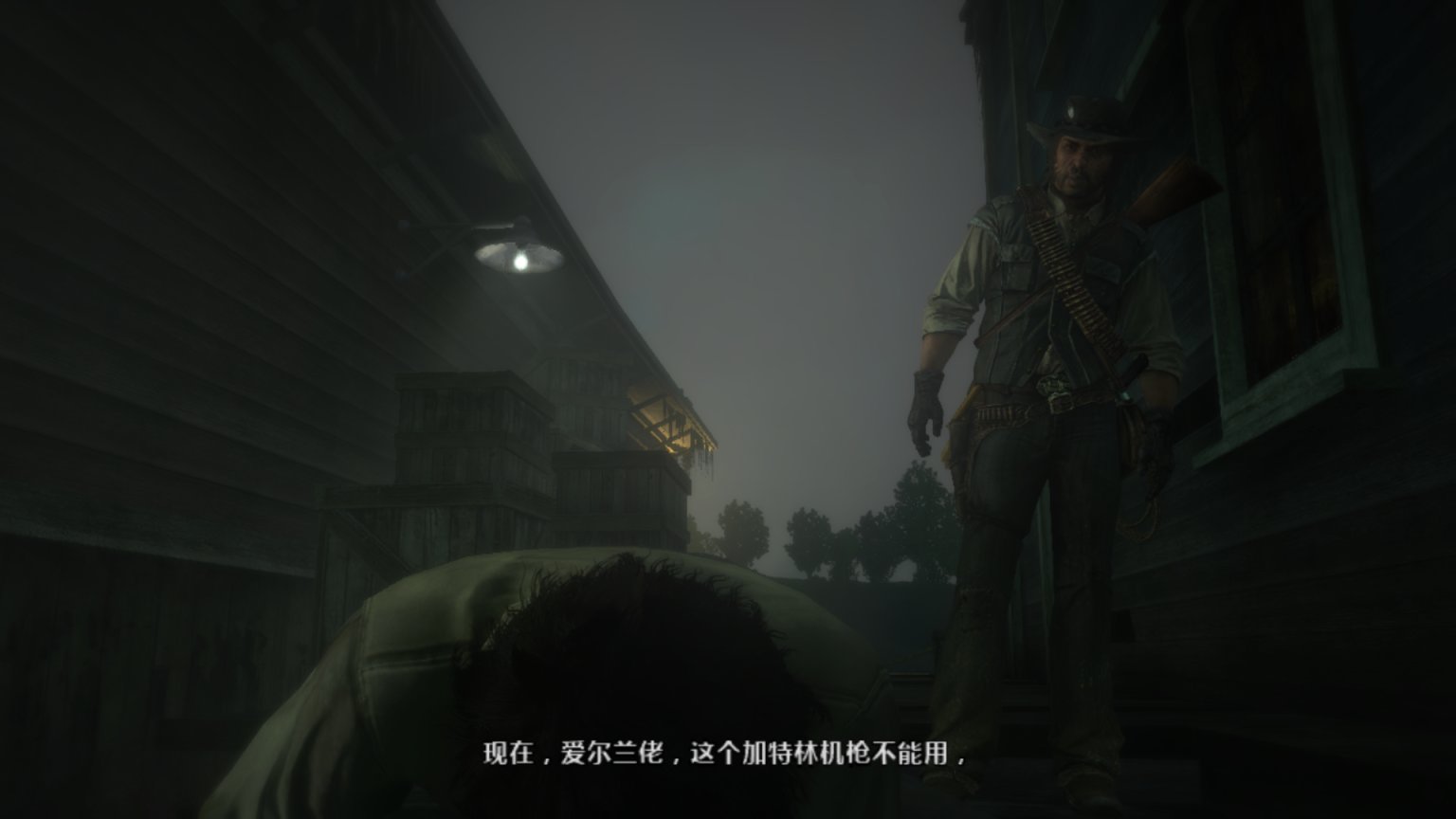 书接上回,狄更斯、赛斯、警长都已到位。机枪也已准备妥当,但爱尔兰人始终没有到达位置。好奇的约翰在盗贼领地找到了这个酒鬼。