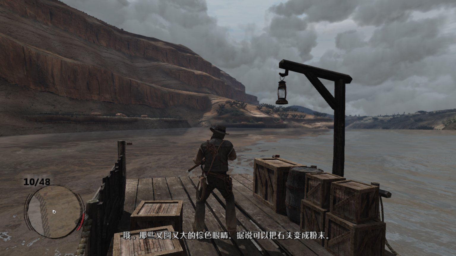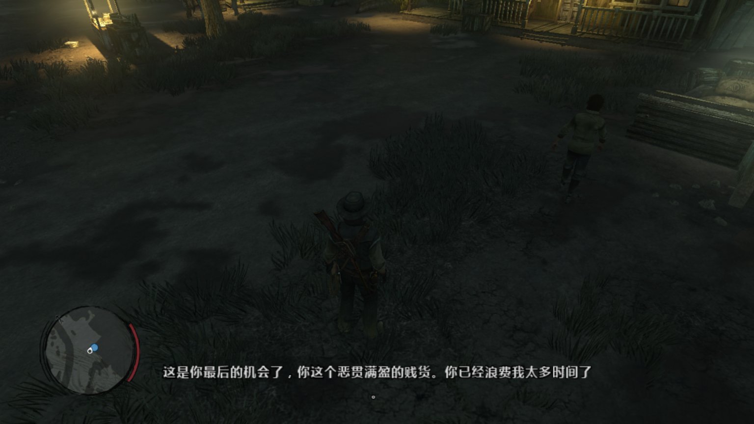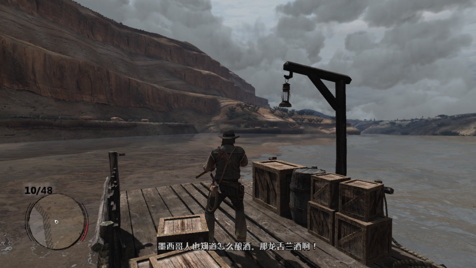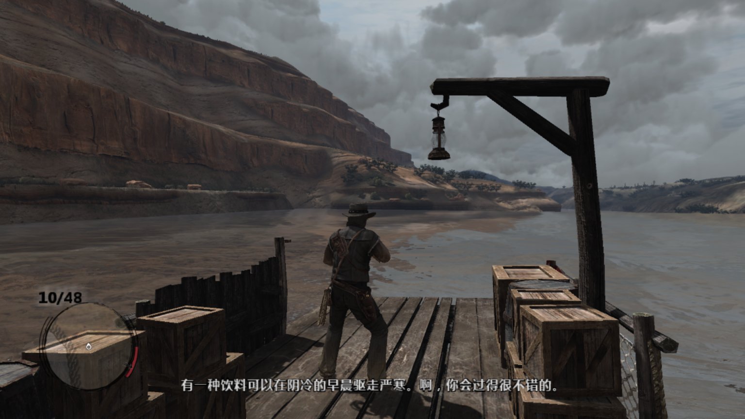 书接上回,狄更斯、赛斯、警长都已到位。机枪也已准备妥当,但爱尔兰人始终没有到达位置。好奇的约翰在盗贼领地找到了这个酒鬼。