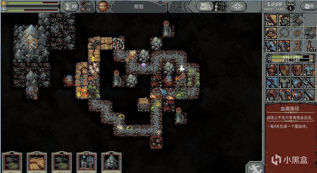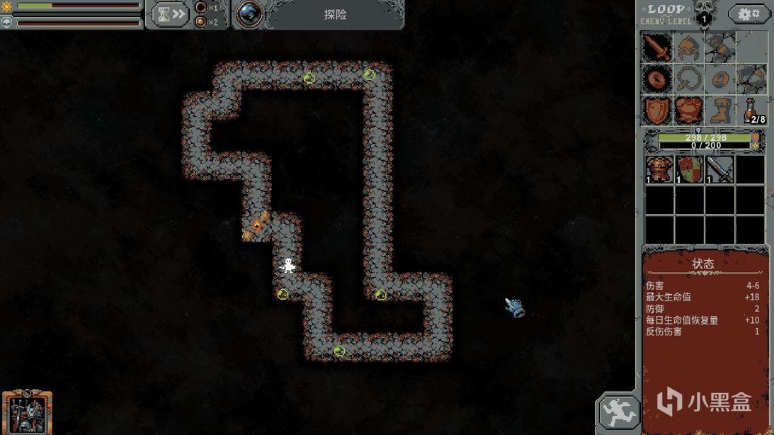 不同于其它游戏那些已经被构建好的关卡。在循环英雄中,主角需要克服的麻烦,正是由自己制造的。当主角奋力击败敌人之后,可以获得武装自己的武器、防具与饰品。