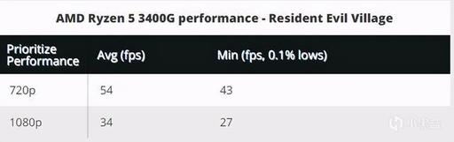 PCgamer使用的是Ryzen 5 3400G的核显进行的测试,虽然游戏在1080p的情况下是未响应的卡死状态,但画质降低到720p并起以性能优先的情况下,游戏平均的帧率达到了54FPS,最低也是维持到了43FPS。