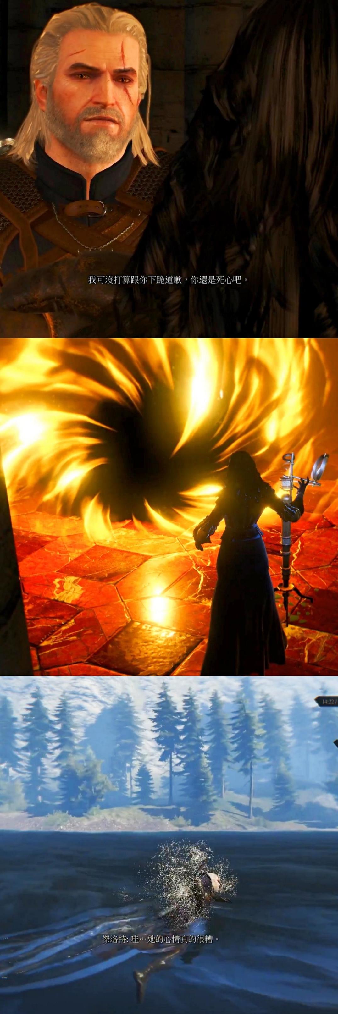 然后,此时杰洛特知道叶奈法理解错了他的意思,嘲讽了他两句,所以一言不发(内心:你要这样想,我有什么办法)但却依然紧紧跟在她后面。