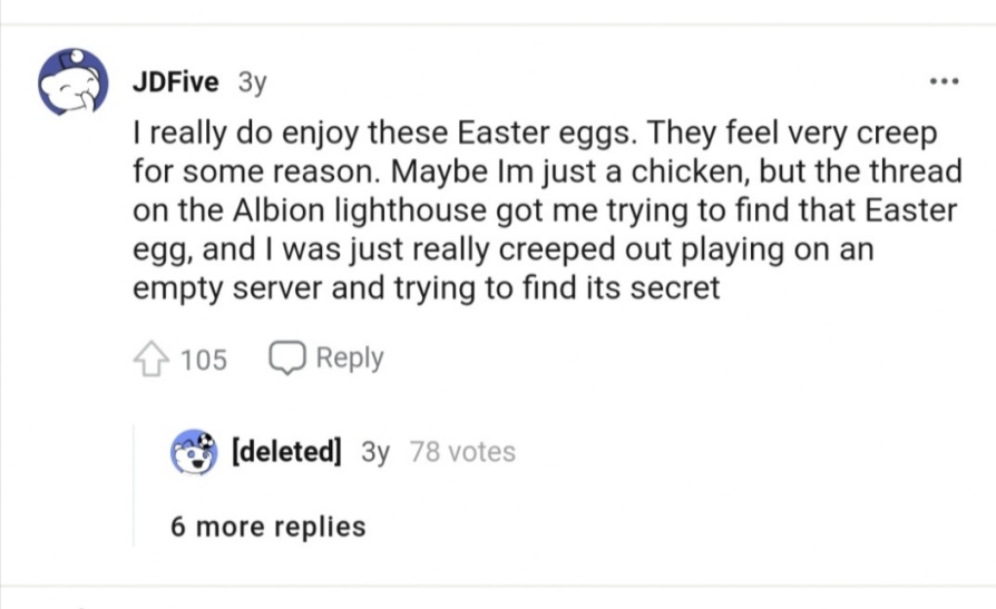 触发方式:先去黑尔戈兰湾的灯塔最高层,爬下触发第一个语音;然后通过一个颇有难度的跳伞落在搁浅毁坏的战舰的桅杆小平台里爬下触发第二个语音;最后在桅杆对面的海滩上找到一个插着铁锹的坟墓,触发第三个语音。