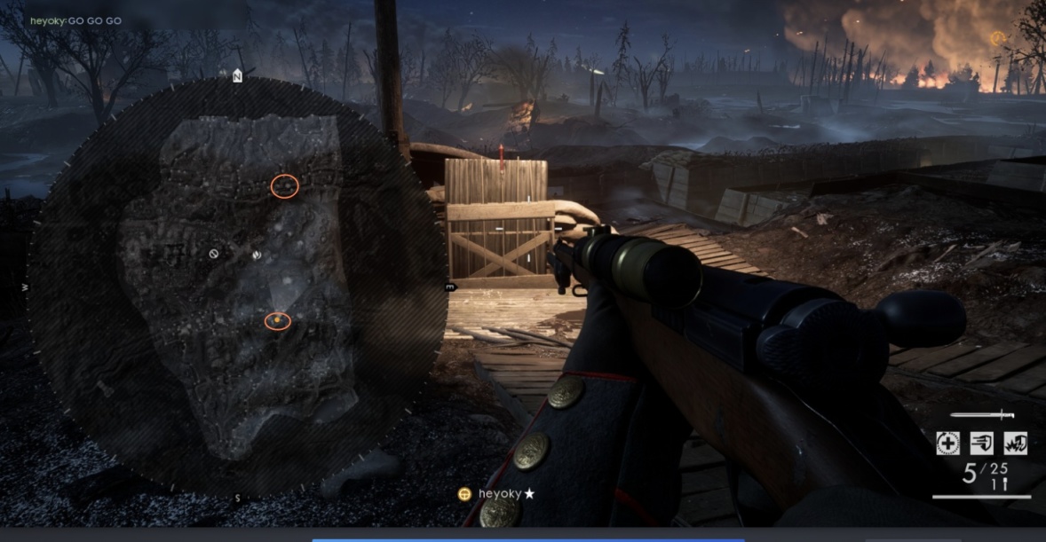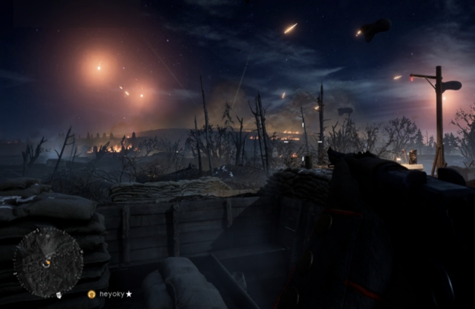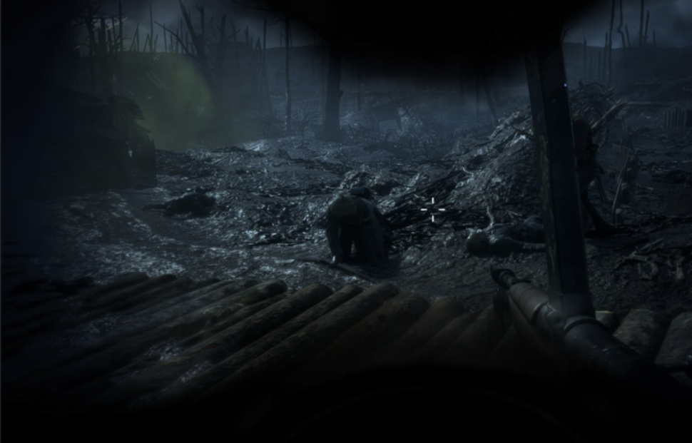 在尼维尔之夜地图中,如果你站在地图的边缘上看远方的山脊,会发现有一队又一队的士兵弯着腰向前方阵地突进。如果你不仔细观察的话,一般还真不怎么容易发现他们。在真实的一战中,玩家所在的地图只不过其中一部分罢了,这些“氛围组”不仅增加了真实感,而且还在能在玩家刚发现时给予其一点欢喜。