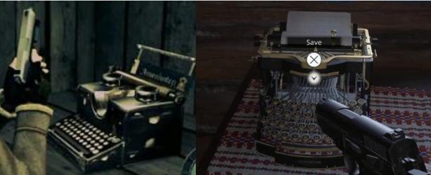 - 经典老式打字机存档点,其实打字机存档也是《生化危机》系列的传统,只不过本作这款圆形键盘打字机和四代真的太像了。