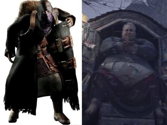 - 《生化危机4》的商人网传为最终BOSS:Sadler领主的弟弟(岛屿的永远守护者?),而本作的商人在背后隐约可见其也拥有家族徽章:猫头鹰