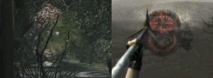 - 在《生化危机4》中,里昂需要和剧情BOSS:湖主进行交战,湖主的形象为感染了寄生虫的巨大娃娃鱼。