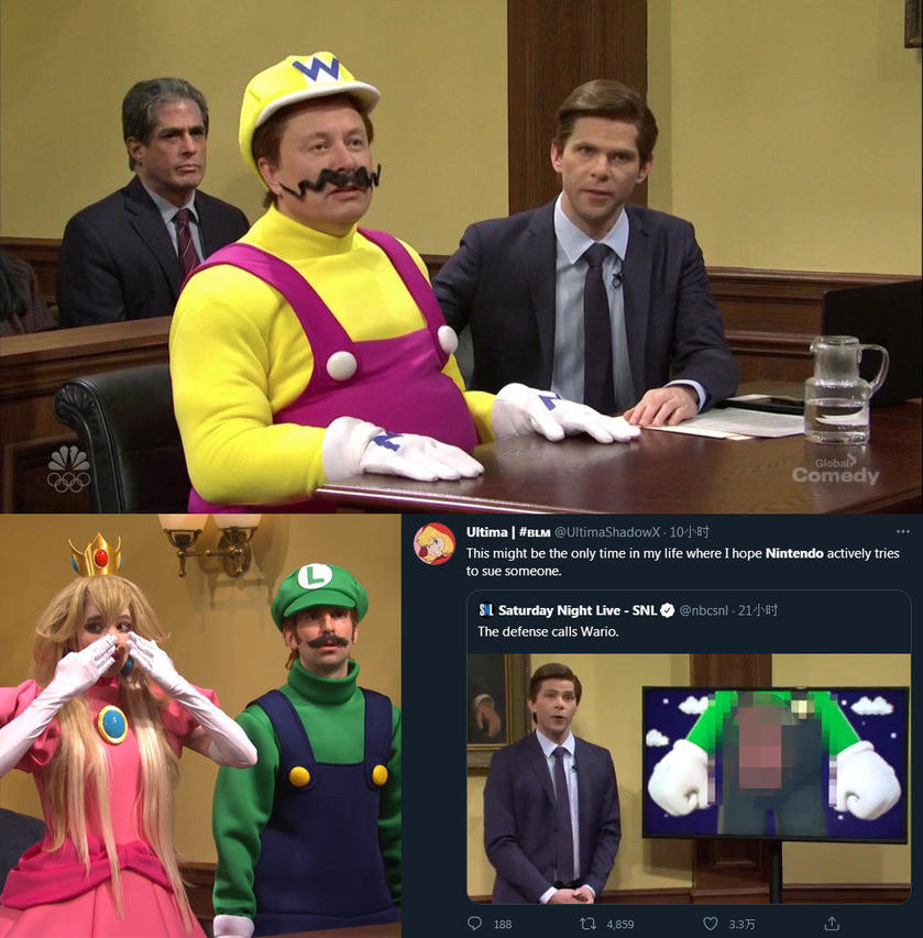 这是一档Cos恶搞情景剧环节,剧情是“马里奥被谋杀后的法庭纠纷”,其中出现了桃子公主和路易吉的桃色绯闻,路易吉的下体照片,埃隆·马斯克扮演的瓦力奥指称马里奥吃蘑菇是嗑药等恶意内容