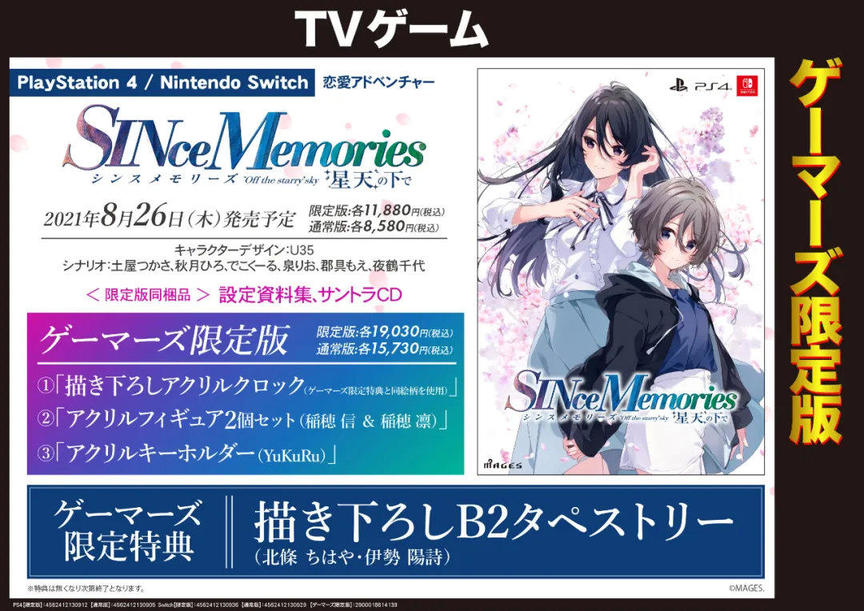 秋之回忆系列新作《シンスメモリーズ 星天の下で》宣布将于8月26日推出Switch和PS4版。(此前计划是秋季,现在公布的这个时间出人意料的早)