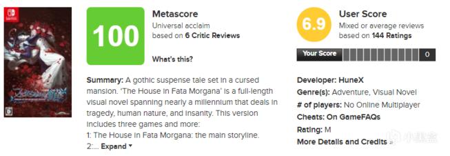 近日NS平台上发售了一款新作《海市蜃楼之馆》,本作是由日本同人社团Novectacle推出的一部西洋浪漫悬疑恐怖风的AVG文字游戏。尽管游戏知名度并不高,但在MC的评分网站上却收获了100分的媒体评价分数,且该分数截至今日为止仍未改变。