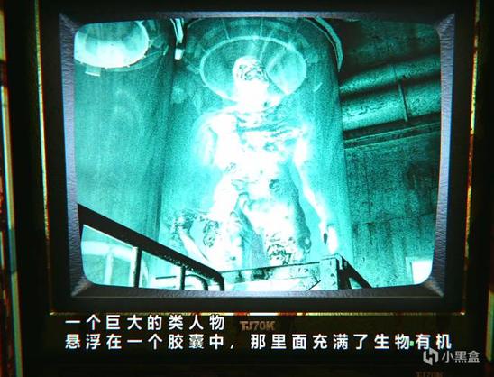 透过一个还在闪烁的显示器画面,瑞贝塔看到一个巨大类人生物,悬浮在一个充满有机生物液体的胶囊中。