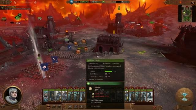 根据开发者的介绍,在《全面战争:战锤3》战役当中,各个种族将因为各自不同的理由,深入混沌魔域、直面混沌势力,而这些战斗的高潮部分就是“生存战”。在这类战斗中,玩家们必须抵挡一波波涌来的恶魔,努力推进自己的军队,逐步占领地图上的胜利点,最终与混沌势力的勇士决一死战——在演示中,卡捷琳女王就率军在黄铜堡垒前与一只嗜血狂魔展开了殊死搏斗,最终成功击杀了这只恐虐麾下的高等恶魔。