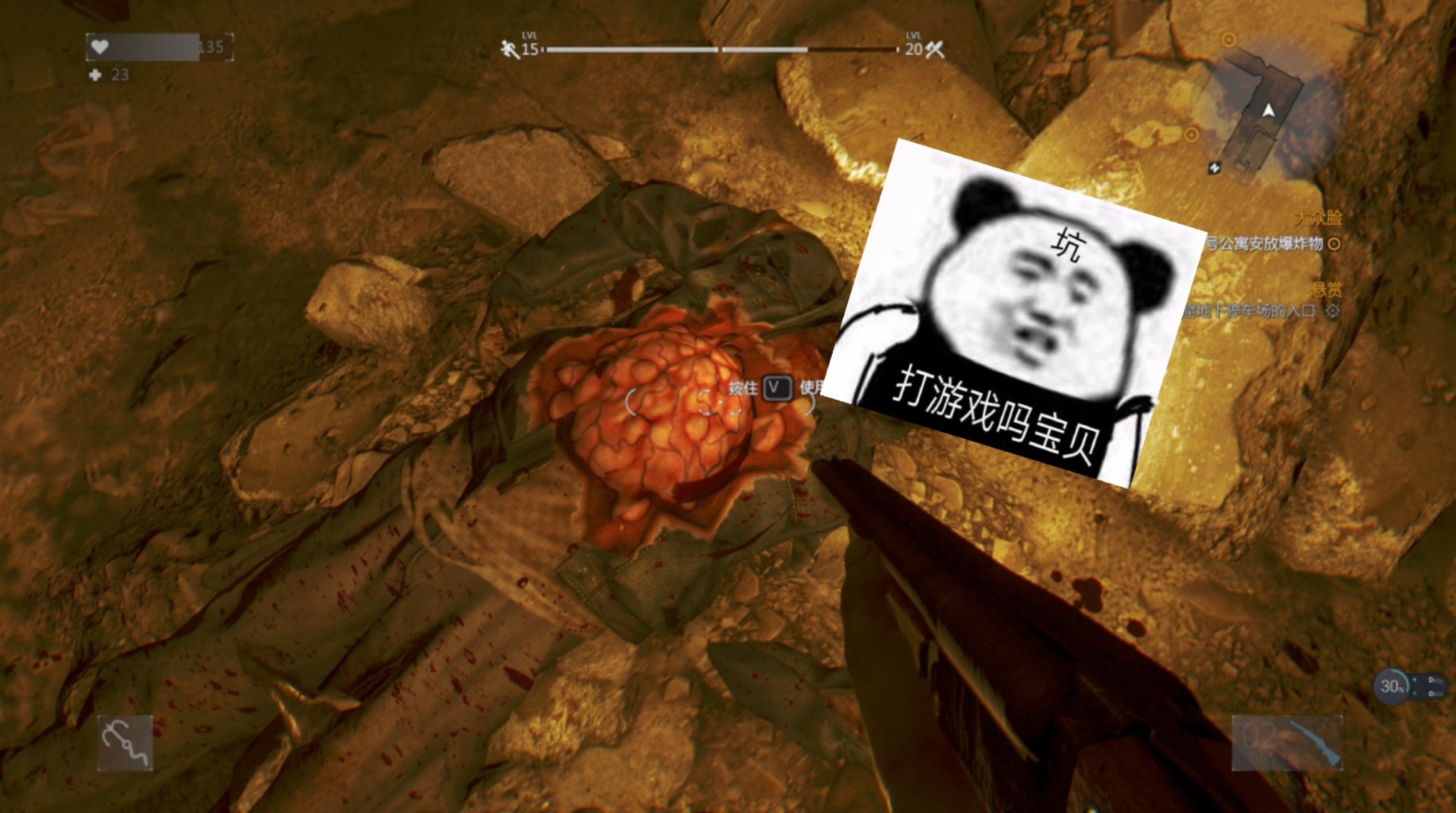 在老城区发现的产物,我最初遇见是在主线用对讲机炸药炸大楼的任务时,在12楼最后一个房间遇见的,第一次玩时真的吓了一跳,小家伙哭声瘆人的很,刺耳的尖叫声能让屏幕出现幻觉,对付它最好的办法就是迅速跑到身边,用“F”键搂着它让它安静下来,有点类似于哄孩子睡觉那种,然后趁机温柔地扭断它的脖子。
