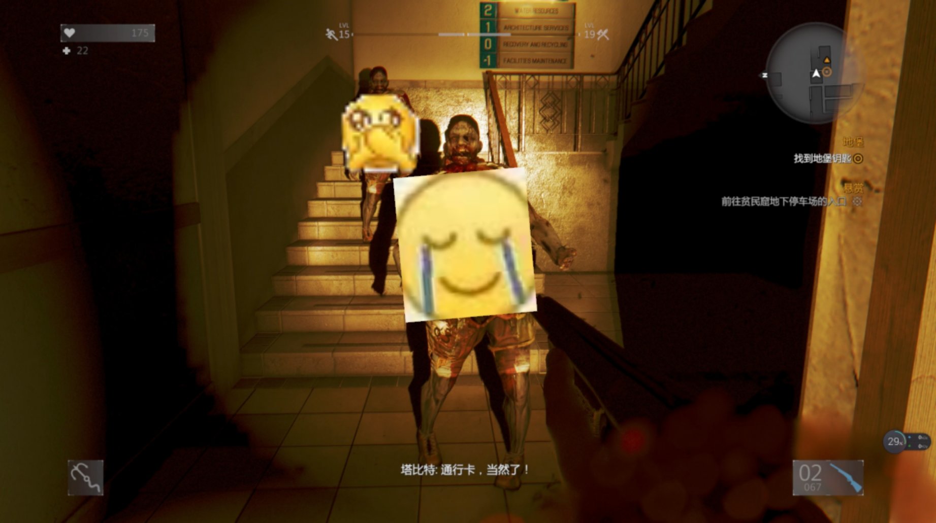 每天一个消光小常识:在伪装状态下搜刮尸体时要小心,如果你因为低头弯腰捡东西而撞到了某只丧尸的话,它一样会揍你,不过仅限这一只~~
