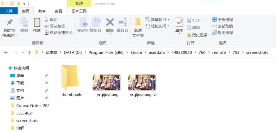 之后我们将任一存储Steam截图的文件夹中的“screenshots”文件夹复制到“753”文件夹中并打开它: