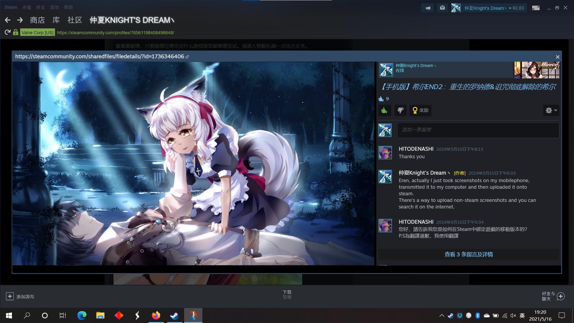 以上就是上传非Steam图片的方法。可以看出,在建完文件夹后每次只需要将图片重命名并拖拽到对应文件夹中即可上传,可谓是一个非常简单的方法,只要尝试一两次就可以做到不依赖教程熟练运用了。这个方法对于经常游玩非Steam平台的Galgame的我来说可谓大有帮助,也希望能够帮到想要在Steam上分享自己在Epic、GOG乃至手机平台的游戏截图的大家。如果大家对这个方法还有什么疑问,也欢迎在评论区留言,我会尽力为大家解答。