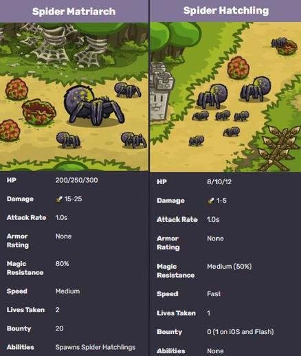 我认为问题还是出在前期资金较为缺乏的时候,一二级的兵营对于此类敌人很难完全阻拦(如果是全兵营挑战当我没说),在加上这两个蜘蛛类敌人本身都有较高的魔抗,对于此最好是进行箭塔和炮塔的物理伤害解决。