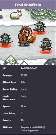 就这个敌人来说,他主要麻烦的问题就是至少给予了敌人速度,攻击,护甲三方面的增幅,当他给予巨魔勇士伤害加成时是最痛苦的,那真伤斧头飞出来那叫一个痛。