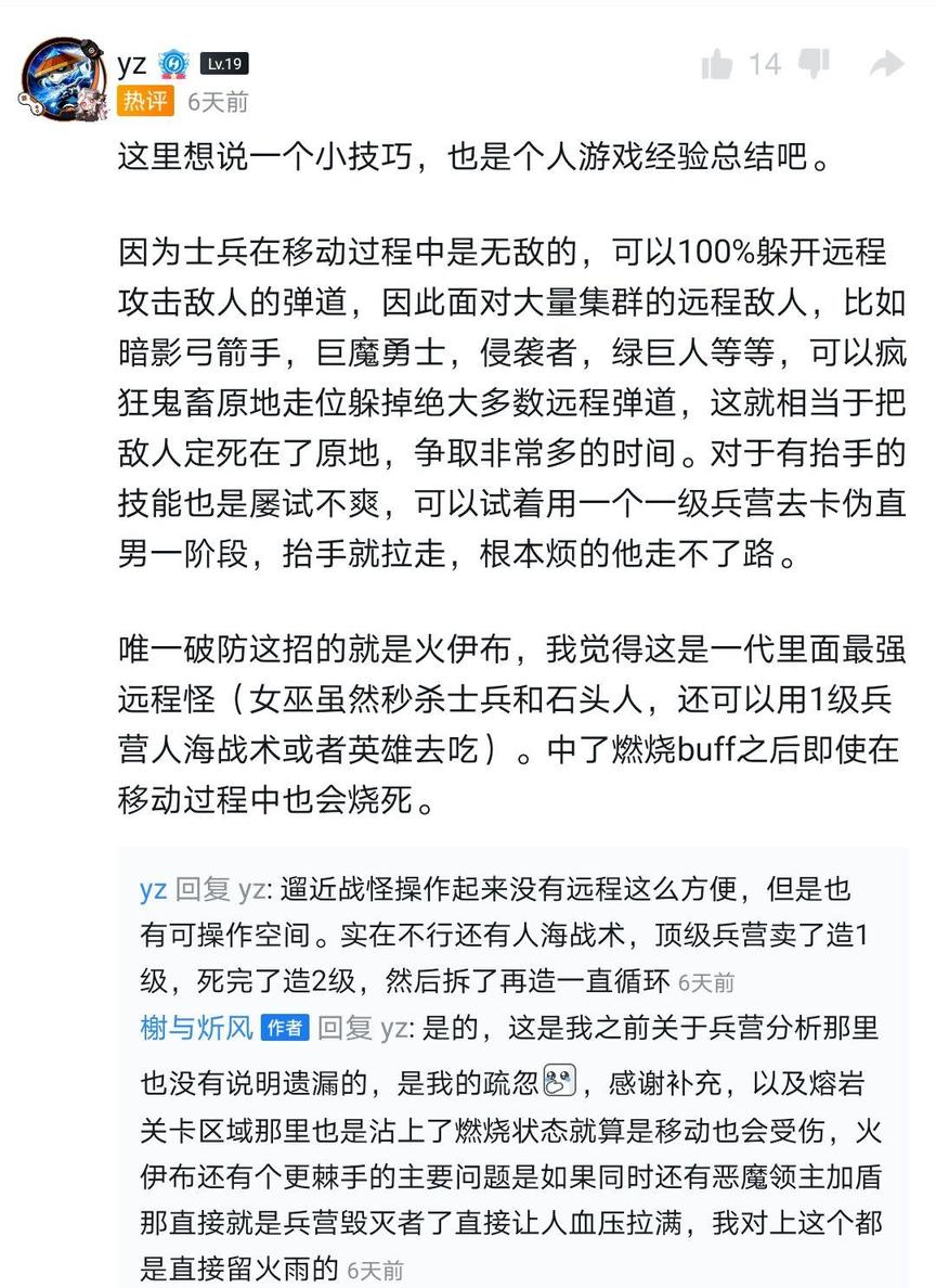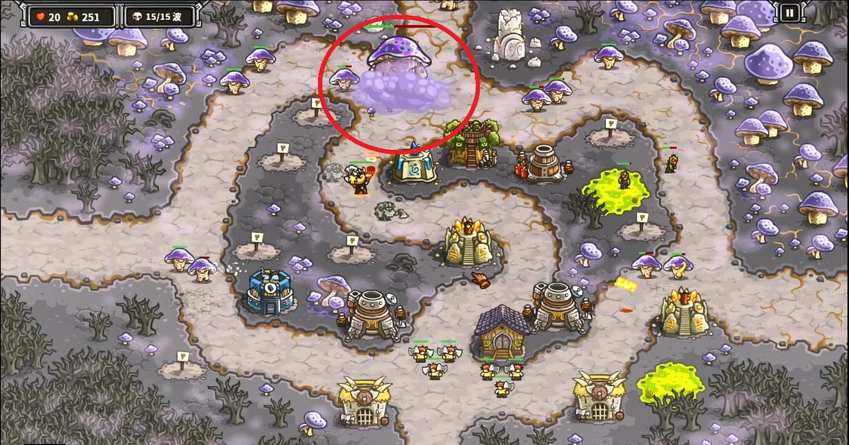 只能说是借助升级兵营后即时刷新士兵与防御塔的火力配合。这里高AOE伤害的炮塔面对恶魔类敌人,具有秒杀能力的火枪塔,巫师塔,奥术塔面对憎恶之类的有奇效。