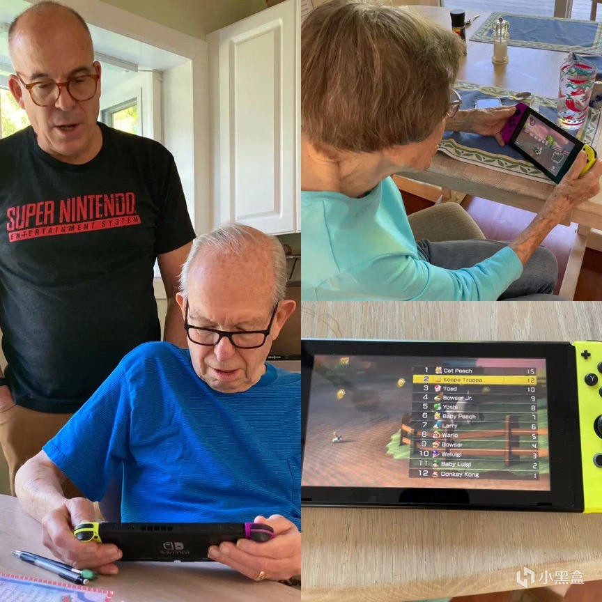 日前北美任天堂总裁Doug Bowser晒出了一副教爸妈玩《马力欧赛车8豪华版》的温馨家庭照。