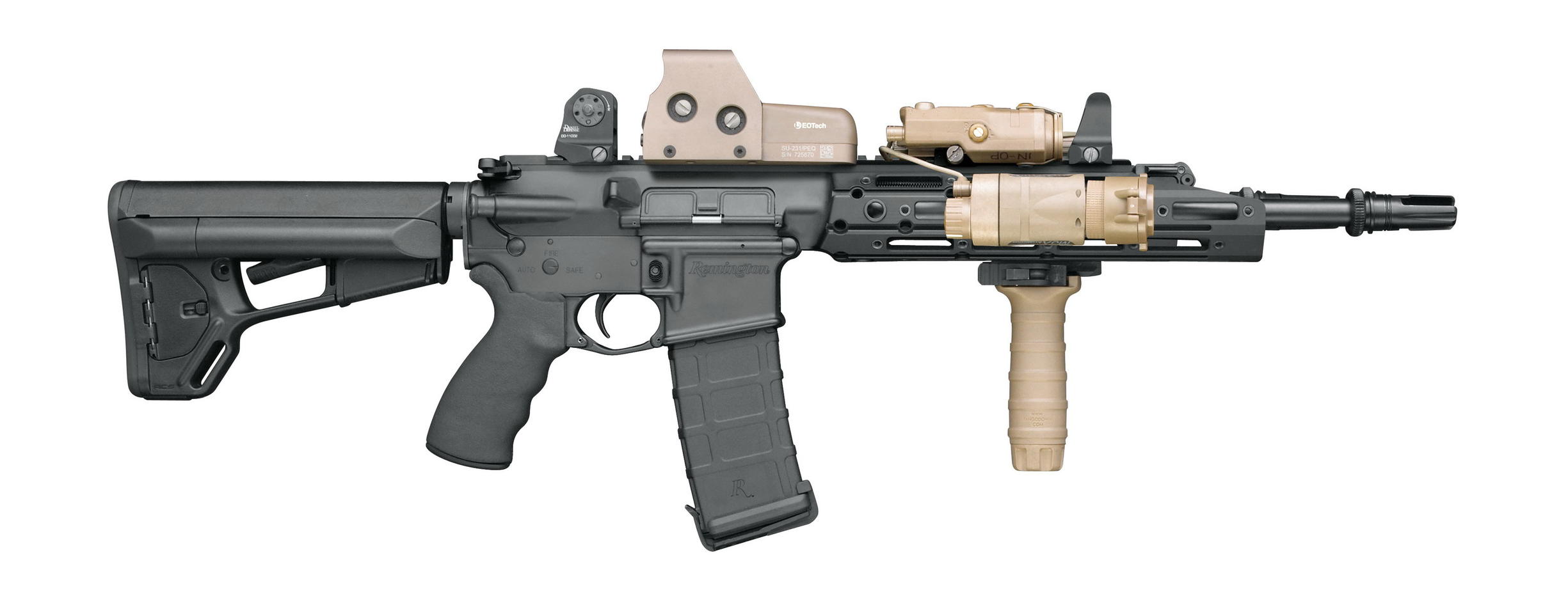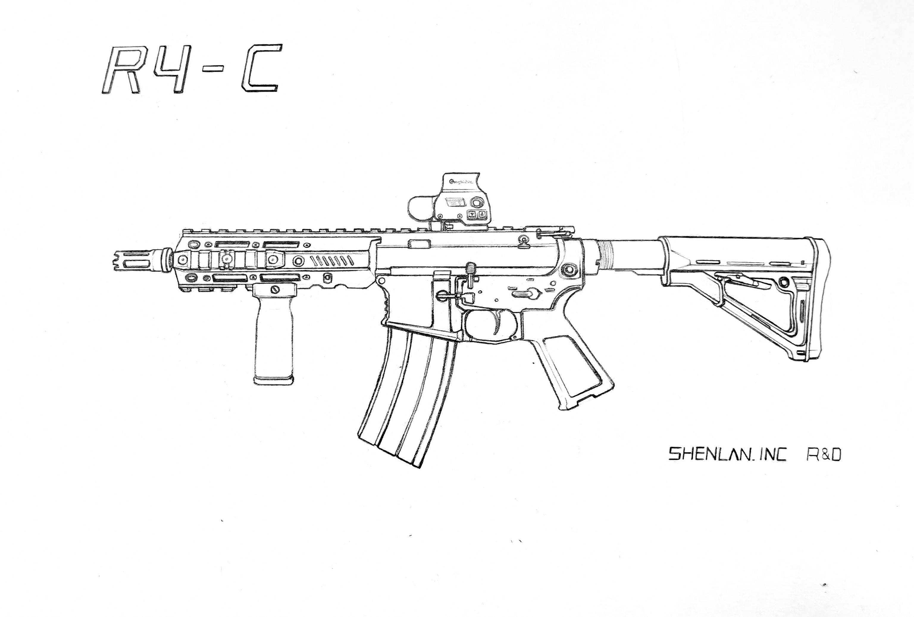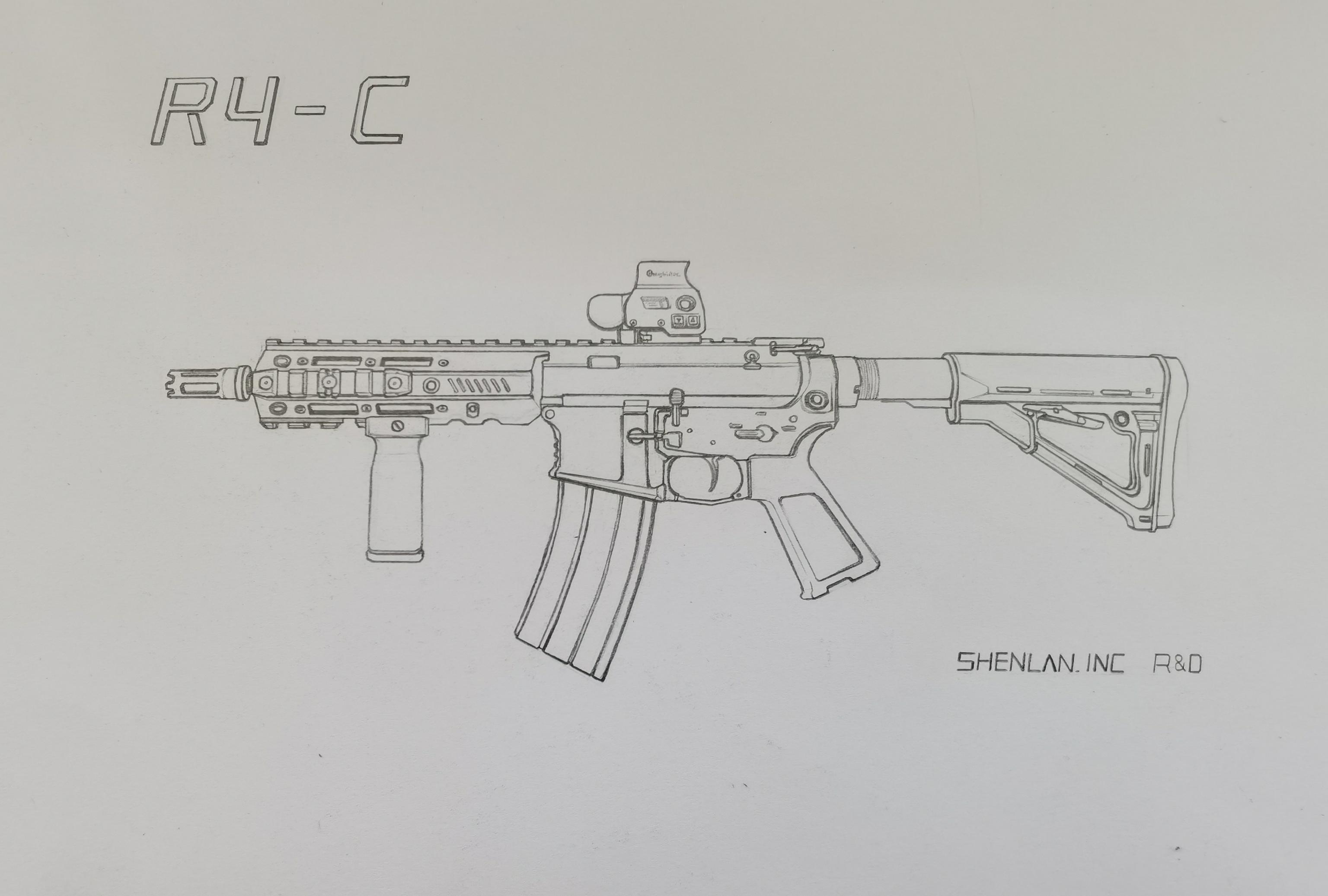 R4-C的原型是雷明顿R4步枪,该枪是雷明顿公司生产的传统气吹式AR,而游戏中的R4-C,就是使用了最短的7英寸枪管的型号,这也非常符合ASH的定位,采用短枪管换取更高的机动性和狭窄空间转向能力。