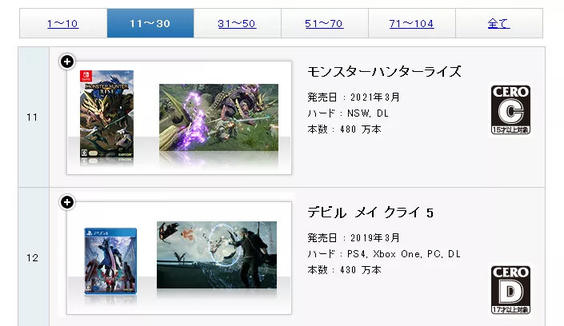 (以《怪物猎人 崛起》目前的畅销长卖表现,第二名的位置只是时间问题)
