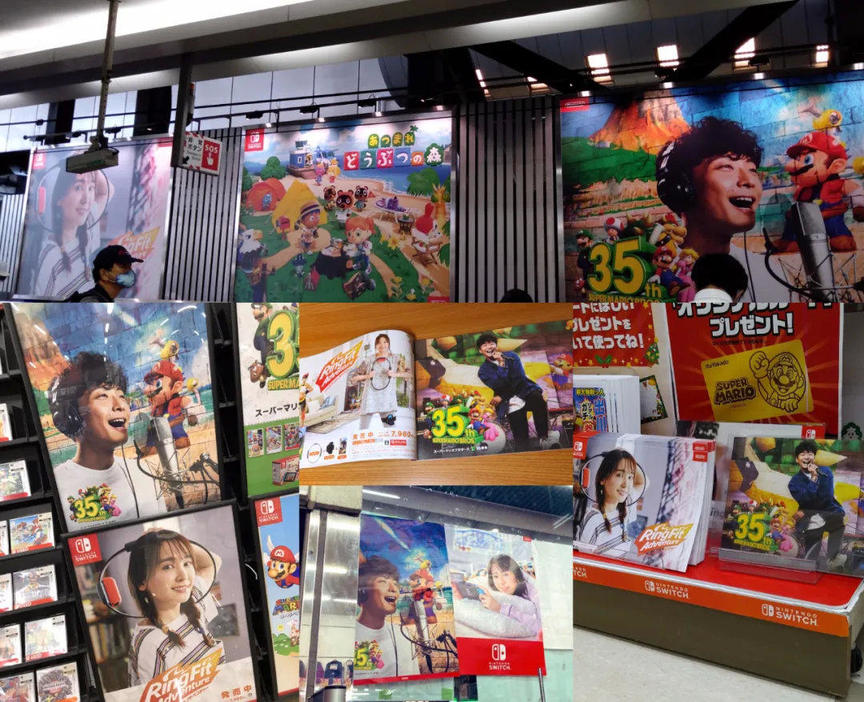 去年年末任天堂为宣传健身环找新垣结衣制作了各式宣传,同时为了宣传马里奥35周年,又找了星野源来唱歌。