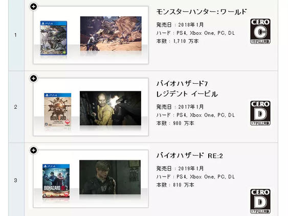 卡普空财报 怪猎未入前十