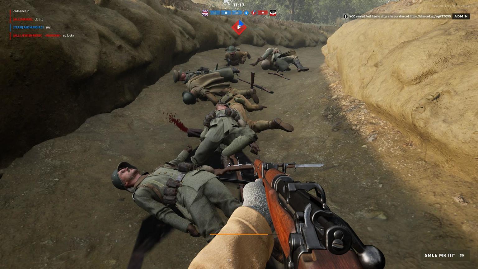 为了最大限度地还原战场环境,BTW中的武器威力接近真实。被冷枪打死/炮弹炸死/刺刀捅死等情况屡见不鲜。对不熟悉拟真射击的新手玩家来说可能会有较强的挫败感。笔者推荐玩家放平心态,积极参与到团队合作中。尽管本作是严肃的拟真射击,笔者也在美服和欧服中见过不少幽默的玩家。有用夸张英音高喊“Get on the top lads, for King and country!”的小队长,也有准备阶段说了一堆德语的“德军士兵”,或是在战壕里开麦播放军乐的玩家。BTW的整体游戏氛围还是比较轻松的。