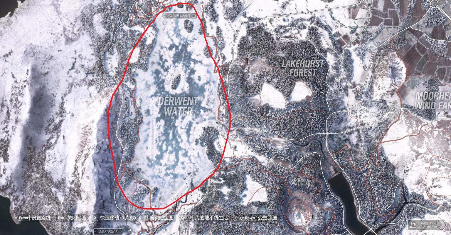 地图左侧的一个巨大的湖泊,冬季时整个湖面都会结上冰。驾驶任意的福特汽车来此合影即可