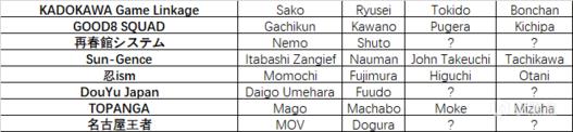 官方目前已公布完所有企业队伍,其中包括忍ism、TOPANGA等大家耳熟能详的组织。诸如Tokido、梅原大吾(目前已康复出院)等明星选手也均在选手名单当中。对于部分未满4名选手的队伍,官方将在8月21日举办Draft Meeting供这些队伍选择选手。而其余玩家则可以通过TRYOUT大会、U-22等方式晋级至Draft Meeting,持有JeSU职业牌照的选手也可以参与到Draft Meeting当中。