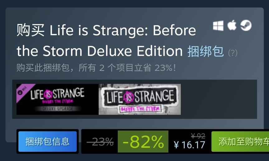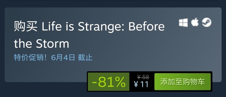 选择取向剧情类游戏《奇异人生:暴风前夕》平史低11元