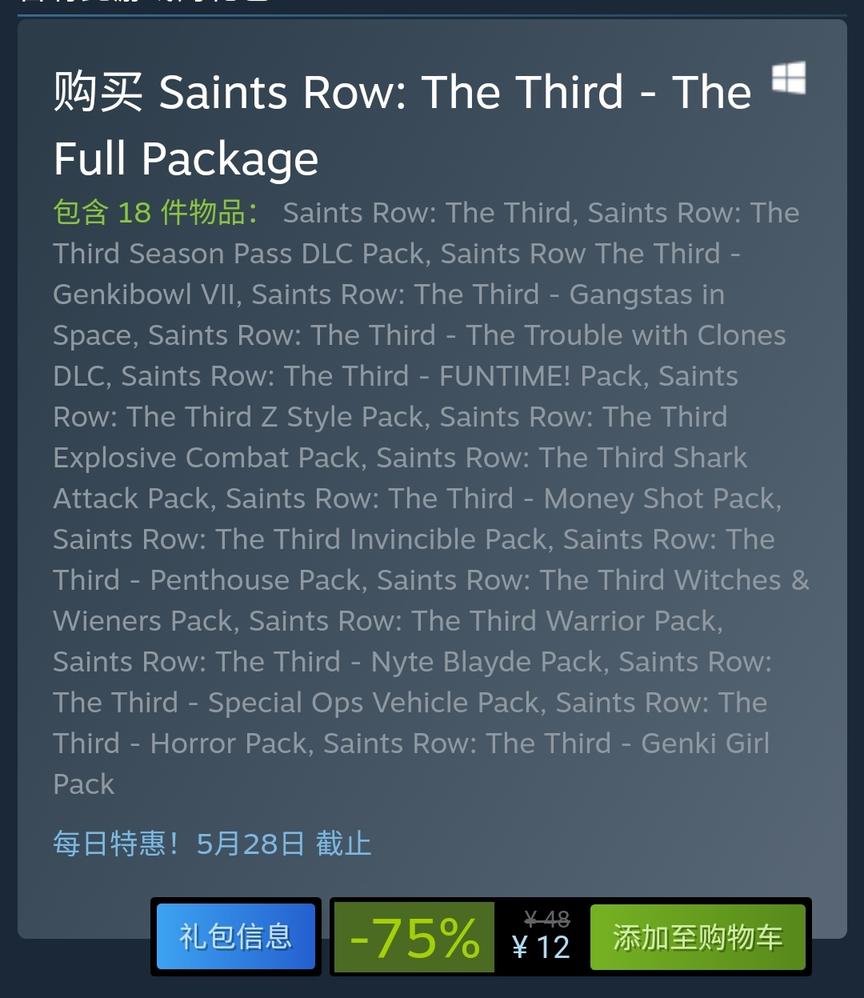 开放世界动作射击游戏《黑道圣徒3》非史低9元