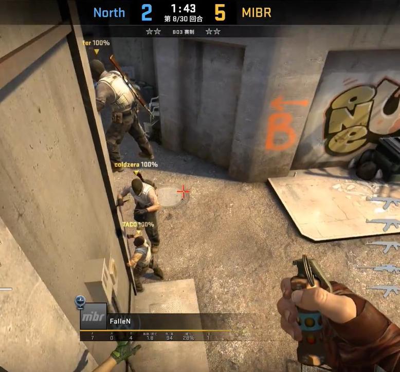 除了以上这些“多人跳跃”,CSGO中还有所谓的旋转跳、连跳等单人跳跃操作。这些操作虽然是一个人就能完成,但难度却大幅度增加。在旧版古堡激战还在比赛图池时,Fallen用旋转跳“单人上树”反杀对手的操作,至今很多人也难以复刻。
