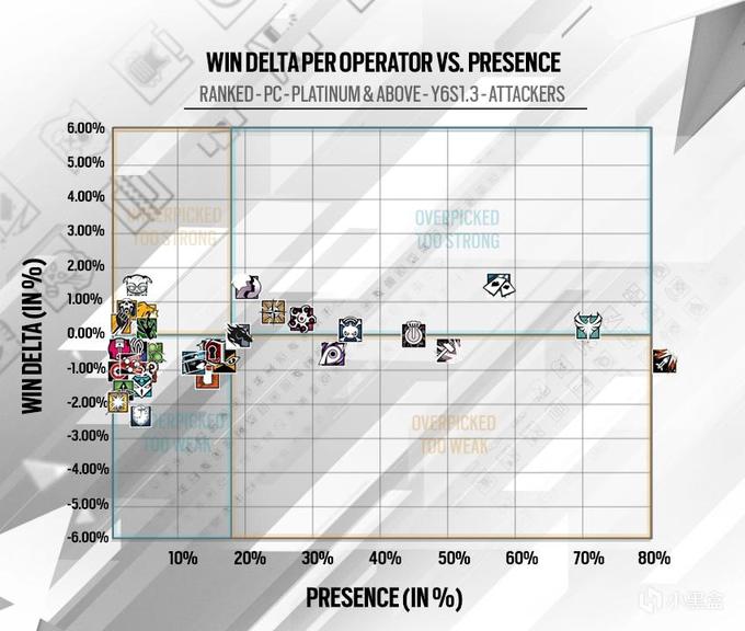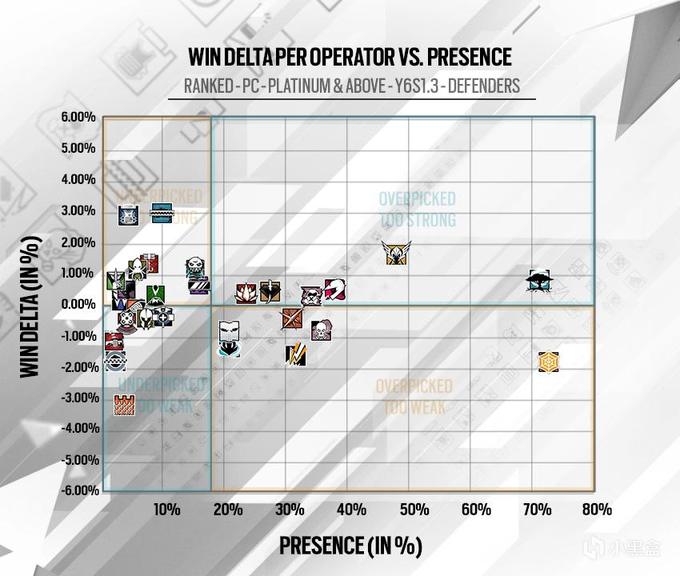 出场率定义:特勤干员未被禁用时的选用率。胜率差:该胜率差是由各名干员在各个炸弹点位的胜率差总计所得。