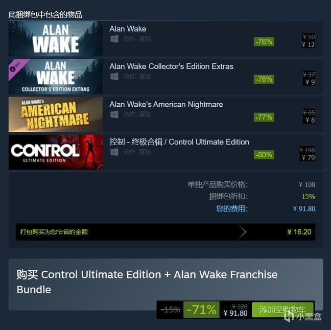捆绑包:CONTROL ULTIMATE EDITION + ALAN WAKE FRANCHISE BUNDLE