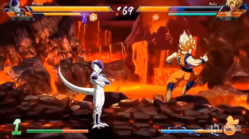 还要特别表扬一下,弗利萨在上方100%气量时的大招,就是那个紫色气弹向下砸(死亡球),如果砸到对手,对手就掉血,如果砸到地面,地面破坏,并出现倒计时,倒计时过后,就会判定弗利萨获胜。龙珠迷们都知道为什么吧?,我就不解释了。