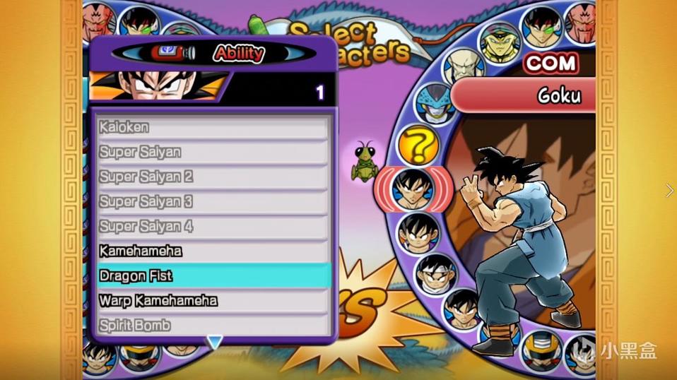 《武道会3》的角色并不多,一些角色或者角色状态需要通过特殊方式解锁,比如寻找龙珠向神龙许愿,或者到特定地点探索等等。角色的状态与技能都需要装备对应的胶囊才能使用,每个角色能够装备的胶囊格子是有限的,因此对战前还需要对角色的装备进行调整。例如悟空想要变身超4的话,就必须装备超1、超2、超3、超4这四个胶囊,想要大招是元气弹地话,就得装备元气弹胶囊,想要大招是龙拳的话,就得装备龙拳胶囊。使用什么技能,玩家可以自行决定,这种自由搭配的设计挺不错的。