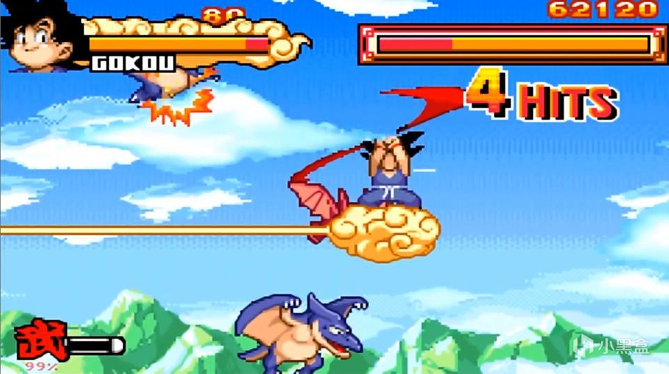 前面提到的《舞空斗剧》虽然素质极高,但还是有一点点瑕疵。那么有没有一款让我挑不出缺点的龙珠游戏呢?有的,那就是GBA上的《龙珠大冒险》,龙珠题材的横板清关类型游戏不多,《龙珠大冒险》称第二,没人敢称第一。拳、脚、跑、跳、尾巴飞行,筋斗云空战、金箍棒多种用途,玩法非常多。画面、音效、操作都十分舒服,随着流程进行,悟空还能增加体力槽和气槽,通关后还能解锁其他角色,甚至还能使用NPC进行流程,未曾设想的道路,我愿称之为绝活。