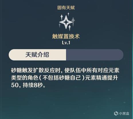 20级突破天赋:砂糖的扩散反应能使队伍中对应元素的角色提升50点精通。也就是说如果我们扩散水,那只能给水系角色增加50点精通。20级突破天赋