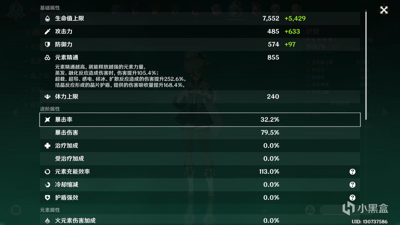 所以说对于一个拥有855元素精通的砂糖,最多可以给主C增加855*0.2+50=221点元素精通。