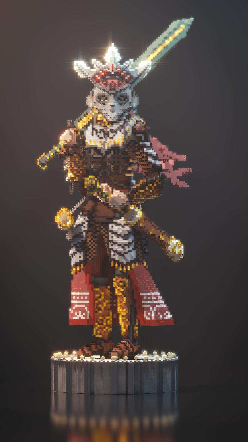 偏向还原为目的,但这一类区别在于注重于个体,姿态、动态和神态,同时以像素体素方块的风格来呈现,犹如巧夺天工,栩栩如生。