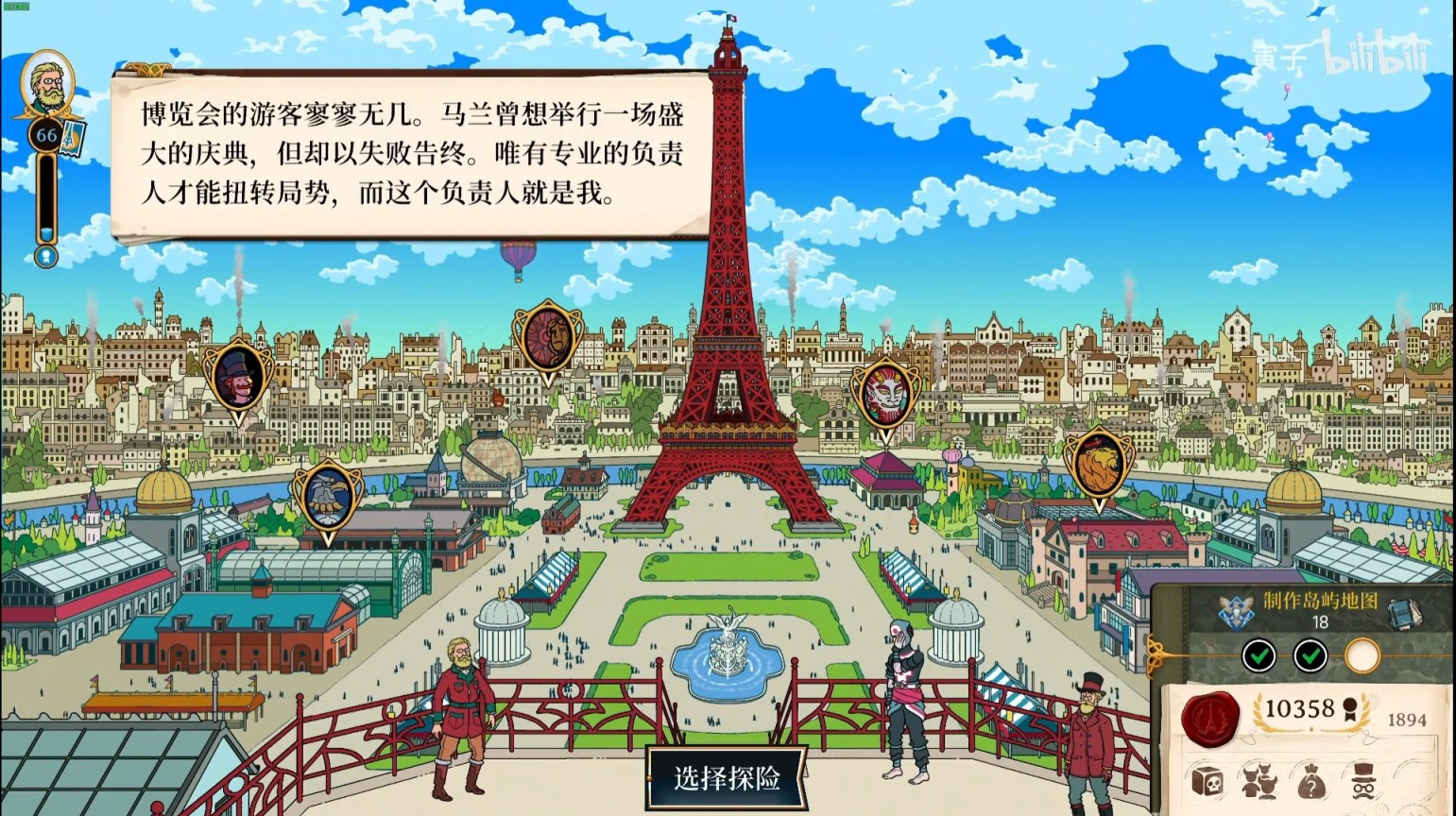 首先这是一款肉鸽游戏,游戏体量不大但还是挺耐玩的。玩家要扮演一名19世纪的探险家,招募同伴,武装自己,在三个俱乐部的支持下前往传说中的岛屿寻找奇珍异宝,带回到1889年巴黎世博会上展出。