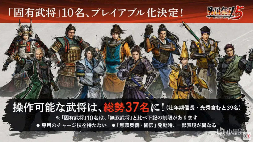距离6月24日发售日不远,光荣在《战国无双5》新一期预告节目中,就“挤”出了意想不到的内容——游戏除了早前公布的27名武将,还有10名可操作的固有武将。