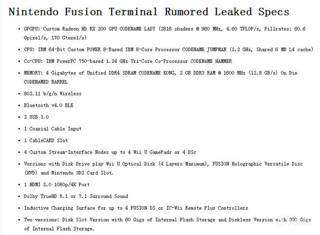 (事实上早在2014年1月,就有媒体报道传闻称任天堂新主机将拥有4.6T浮点运算性能,是PS4机能的2倍,手柄摇杆附带力回馈功能等等