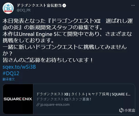 节目播出后,勇者斗恶龙官推宣布,《勇者斗恶龙12》正在使用虚幻5引擎开发,同时为SE招人打了一个广告。